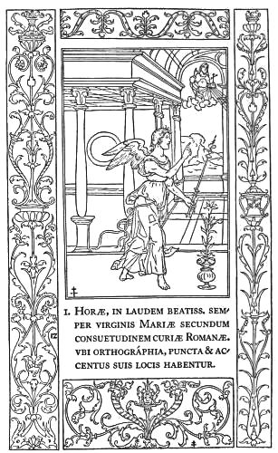 The printer of this volume has had more than ordinary good fortune in literally stumbling upon most of the designs here reproduced. The pressure of other work has prohibited systematic research, and the originals of these illustrations were nearly all discovered while he was engaged upon other matters. Many were found in the Harvard Library, some in the reference library of the Riverside Press, some in auction rooms, and some in booksellers' catalogues. The only exception is the series of borders from the Hours of 1524-25, which were expressly photographed from the copy in the library of the British Museum.