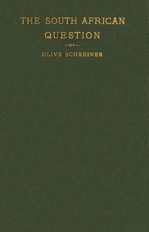 The Project Gutenberg EBook of The South African Question, by Olive Schreiner This eBook is for the use of anyone anywhere in the United States and most other parts of the world at no cost and with almost no restrictions whatsoever. You may copy it, give it away or re-use it under the terms of the Project Gutenberg License included with this eBook or online at www.gutenberg.org. If you are not located in the United States, you'll have to check the laws of the country where you are located before using this ebook. Title: The South African Question Author: Olive Schreiner Release Date: October 23, 2019 [EBook #60560] Language: English Character set encoding: ISO-8859-1 *** START OF THIS PROJECT GUTENBERG EBOOK THE SOUTH AFRICAN QUESTION *** Produced by Tim Lindell, David E. Brown, and the Online Distributed Proofreading Team at http://www.pgdp.net (This file was produced from images generously made available by The Internet Archive/American Libraries.)