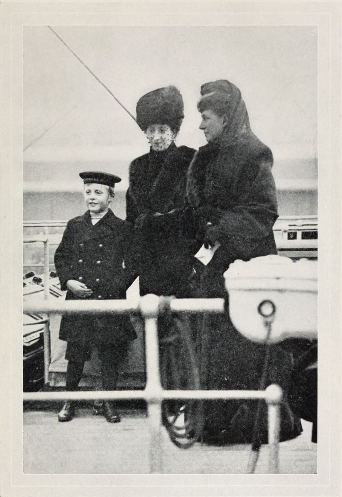 Even on board the ship I could not go about and see the sailors. I had to remain in the Royal cabins, or move with the others among the standing salutes of officers who could not speak or be spoken to. We had lost the freedom of private persons; we had become like commanding officers in a world governed by the army regulations of Court etiquette; we could not go anywhere without sending word ahead so that life might be put on parade for us. Our meals were ceremonies. We attended a very long and formal Mass that was celebrated for us on board. And I remember, as my one real pleasure on the ship, that I had to sleep in a saloon on a billiard-table, where a mattress had been spread for me, because there{24} were not enough Royal cabins to accommodate us all.