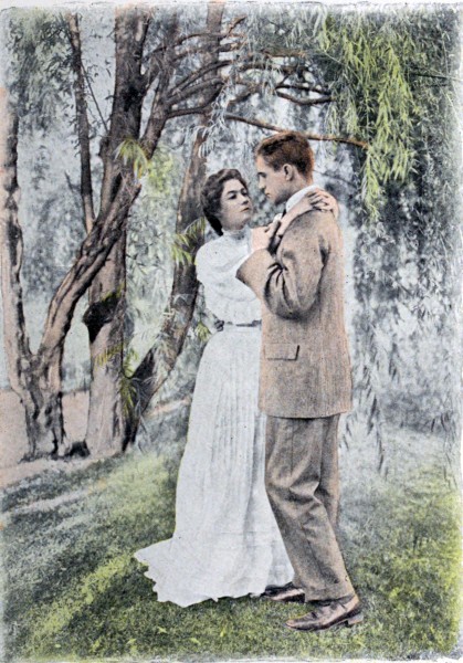 It was a beautiful scene into which Ethan had floated. Overhead was a blue sky against which a few soft white clouds hung seemingly motionless as though, like Narcissus, they had become enamored of their reflections in the pool there below. On a tiny islet in the pool, dwarf willows[19] caressed the water with the tips of their pendulous branches. Further on a trio of white swans sunned themselves, and about the margin the bosom of the pool was carpeted with lily-pads and starred with a multitude of fragrant blooms, white, rose-hued, carmine, pale violet, sulphur-colored and blue. The gauze wings of darting dragon-flies caught the sunlight, insects hovered above the flower-cups and in the branches around many a feathered cantatrice was singing her heart out. And for background there was always the varied green of encircling trees.