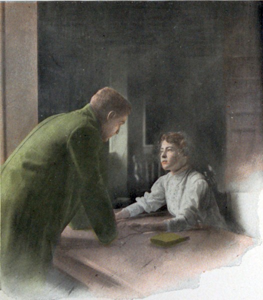 After dinner a big blue touring-car chugged its way southward along the shaded road, with Farrell at the wheel and Ethan’s note in Farrell’s pocket. Ethan watched it disappear. Then, drawing a chair to the edge of the porch, he set himself in it, put his heels on the railing, stuffed his hands into his pockets and asked himself with a puzzled smile why he had done it.