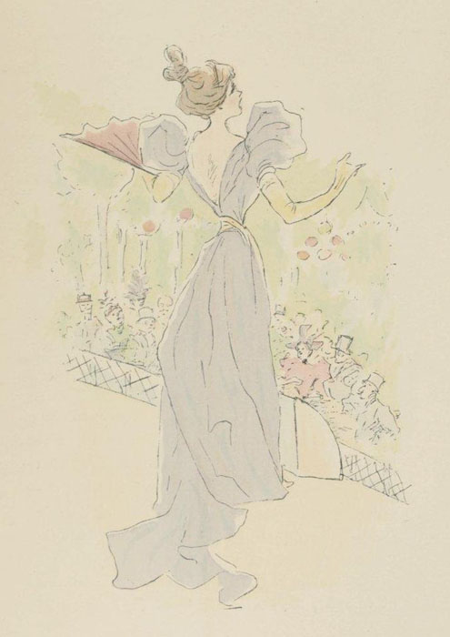C’est dans le grand hall, dont les jours sont comptés, l’éclosion annuelle de fleurs rares, de fleurs étranges, de nuances qui affolent, de parfums qui grisent. La mode, ce jour-là, est là, toute audace dehors. Elle se lance. Ce que la fantaisie peut rêver, elles l’ont rêvé, les Parisiennes si excentriques avec tant de justesse et si mesurées dans ce qui est sans mesure. On les regarde; non les œuvres.