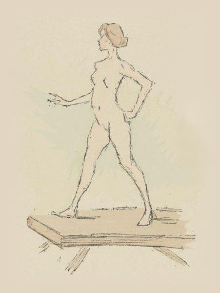 Elle n’a point posé. Elle le dit. Sa dénégation esquisse les gestes grêles et un peu javanais que nous connaissons à la danseuse de marbre. Eût-elle même posé que nos railleries se devraient taire—nos railleries banales qui la harcèlent.