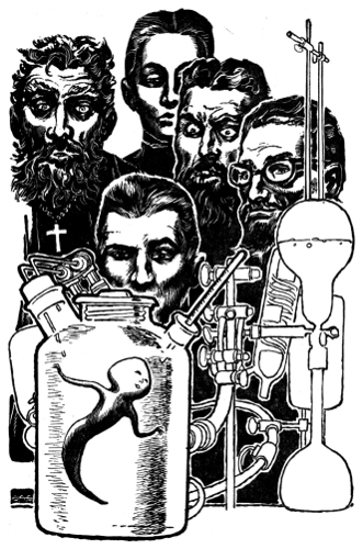 "My brothers, Ivan especially, were interested in my research. He had a theory that we could eventually produce hosts of men in this way, whole armies and political parties, all Nihilist and all of them Stulnikov-Gureviches. I assured him that this was impossible, that I could not play Cadmus, for free-swimming forms are one thing, we have the way to feed them in the aqueous medium; but to make fully developed mammals placental nourishment is necessary—that I cannot provide. Yet to please him I begin with (pardon me!) the egg of my sister, that was as good a beginning as any and perhaps it intrigued my vanity. Ivan dreamed his dreams of a Nihilist Stulnikov-Gurevich humanity—it was harmless, as I told myself."