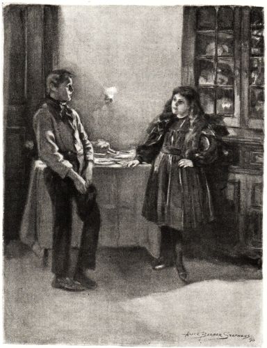 What now followed was one of the most singular scenes that any small boy of seven ever set eyes upon. From the wide-opened door flashing white things came flying out; high above the heads of the crowd they came; but as they descended a forest of straining arms and hands received them; and there was cheer after cheer as the plunder went on. It did not matter what it was: silver fish-knives, coffee-pots, biscuit-boxes, cruet-stands, opera-glasses—out they came flying to fall into this or that one's clutch; and again and again the hoarse roar of exultation went up, even from those who could not get near enough to share. These people with the upstretched arms appeared to have no fear whatever of getting their heads cut open by an electro-plated salver, a drawing-room lamp, or a brass candlestick. Out the missiles came; and the covetous fingers grabbed here and there; and the fierce tumult of applause ebbed and flowed. Where were the police? Well, there did not seem to be any police. It is true, a number of special constables had been hastily sworn in (my eldest brother was one of them, and according to his own account performed prodigies of valor); but they could not be everywhere; and meanwhile the poor silversmith's goods were being catapulted out to those clamorous upstretched hands.