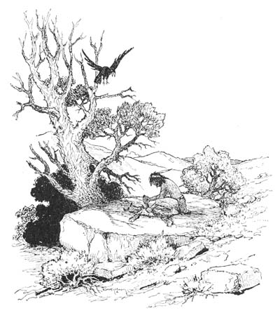 “Oh, Redskin,” answered Kaw in a voice that was choking with laughter, “Redskin is dripping off your back! The rain transferred him from me to you. Cho-gay declared the color was fast—but—Oh, haw—haw—haw—I don’t think even he knew how fast!” and then as he saw that the eagle was beginning to understand what had happened, he started to hop up and down in his usual, grave way, and to chant: