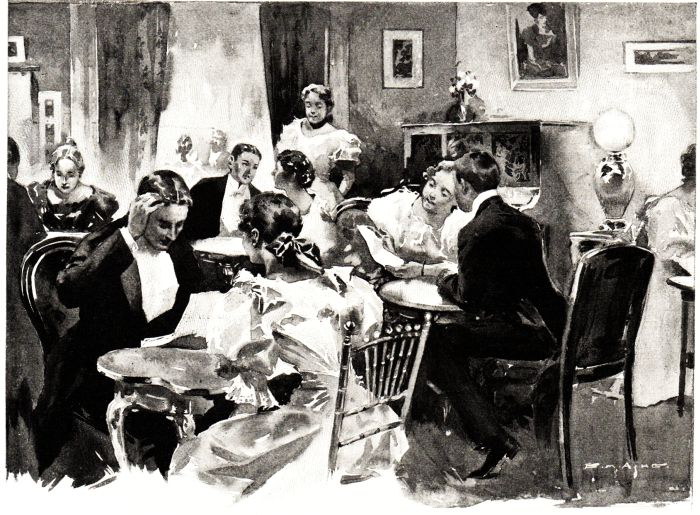 "How would it do," asked stately Elizabeth, beginning to be interested, "to have bows or rosettes of ribbon—two of each color—distributed, and let each person take for a partner the one that wears the corresponding badge? Then, of course, there would have to be two sets of Valentines. For example— Here, give me your pencil, Catharine, please, and that empty envelope. How would this do?