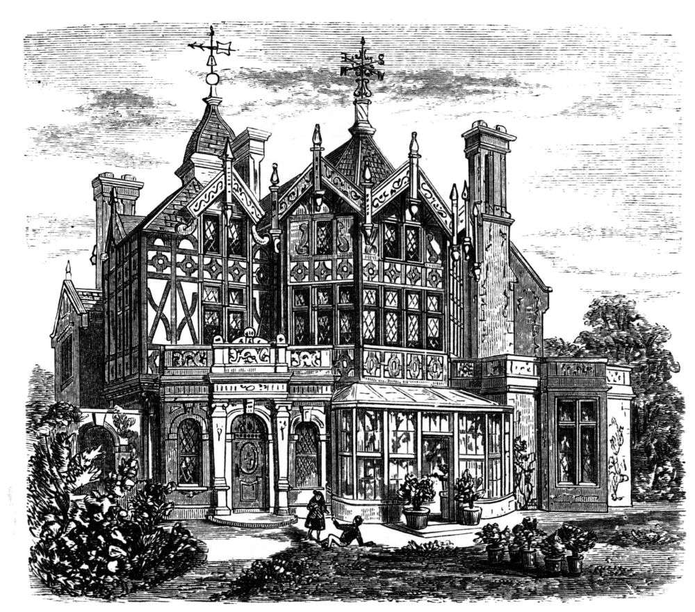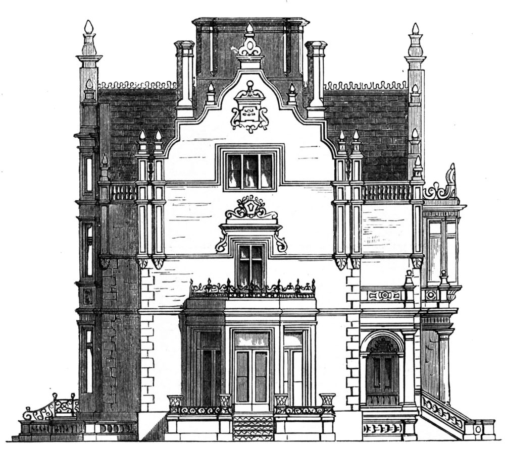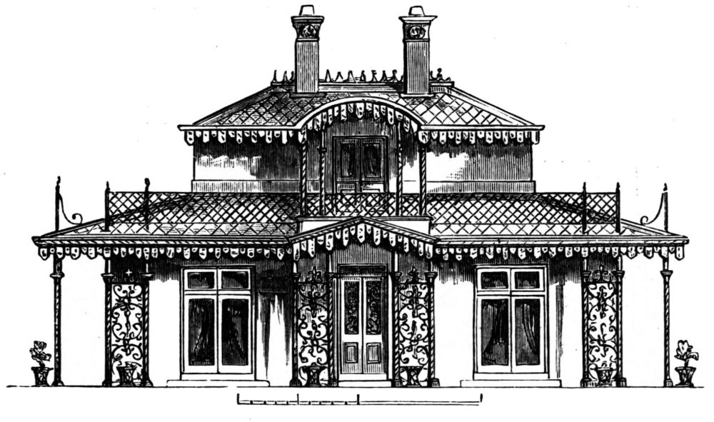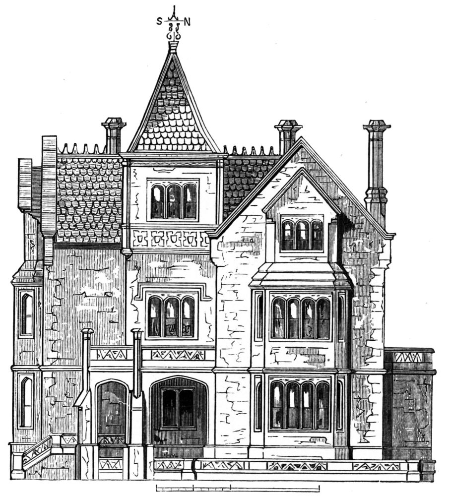 An essential element of success in every branch of progress is involved in tasteful selection. Without considering those classes who by successful efforts of their ancestry have been placed beyond the pale of want (either artificial or real), a large proportion of our population may be ranked as having advanced morally, socially, and commercially by that intuition{8} which characterizes our national progress. It takes as its basis nature and nature’s products. It eliminates from these not only pecuniary benefits that in a commercial point of view may occur, but associating the useful with the beautiful (the sense of the latter having been gained during intervals of quiet thought as a relief from the incessant requirements of business engagements), a tendency to embody the picturesque, especially in regard to architecture, arises. We have no hesitation in assigning to this cause the production of some of the most picturesque architectural erections which grace our country,—that render English homes an example, and prove that, while the main element of our national prosperity is making money, we are not insensible to the beneficent influences resulting from the cultivation of refined taste.