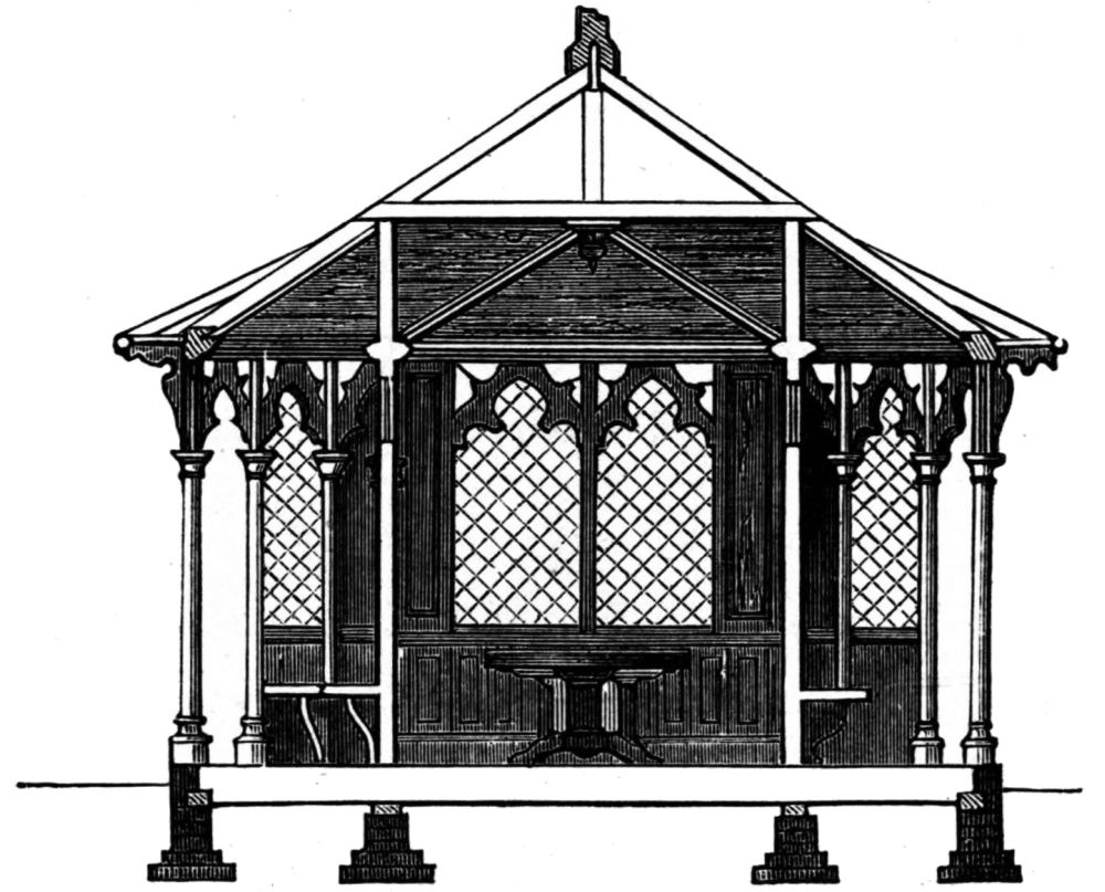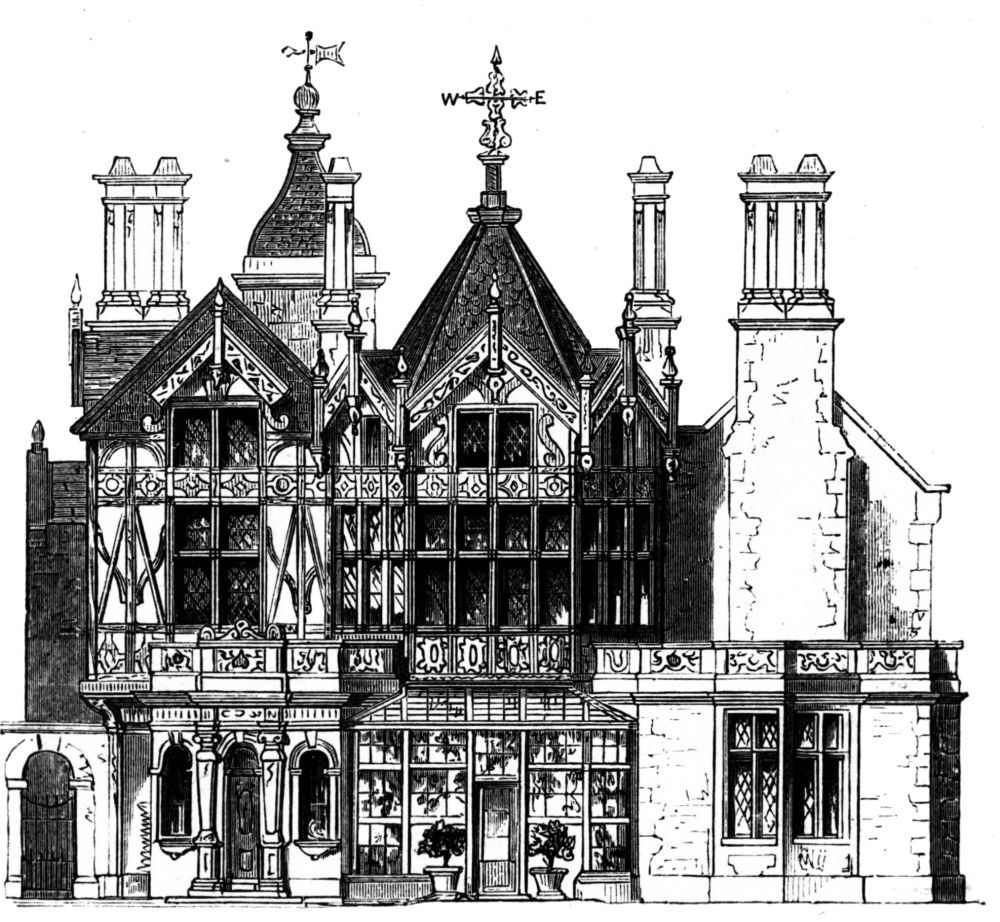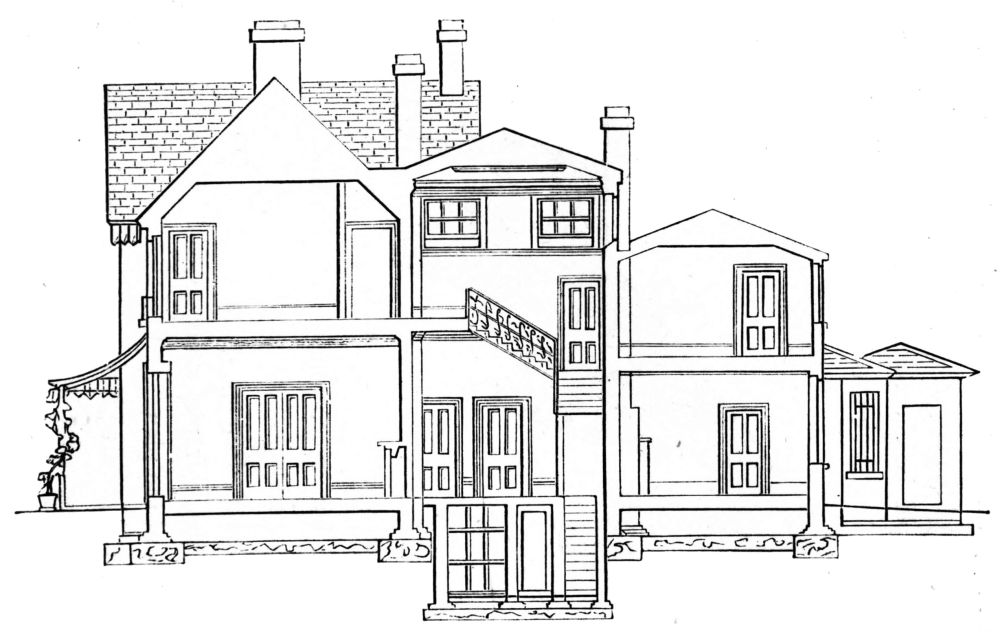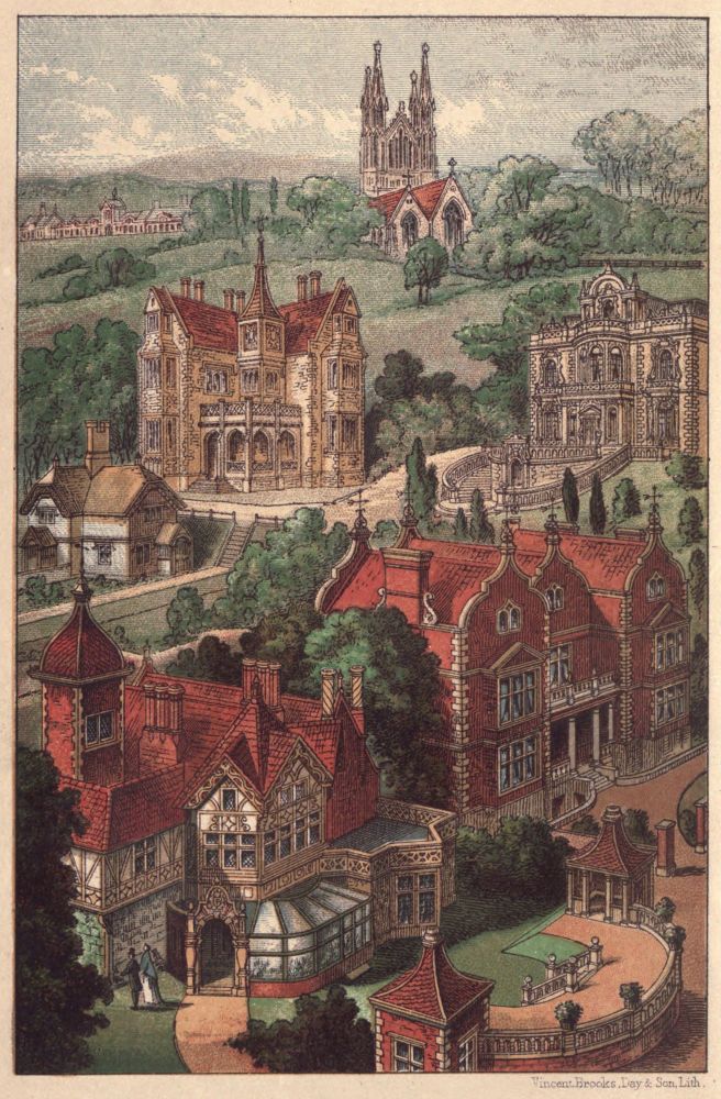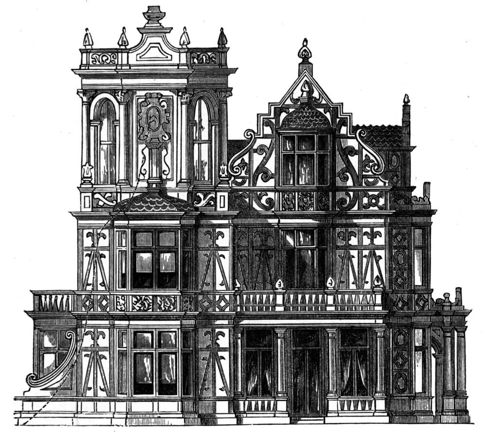 An essential element of success in every branch of progress is involved in tasteful selection. Without considering those classes who by successful efforts of their ancestry have been placed beyond the pale of want (either artificial or real), a large proportion of our population may be ranked as having advanced morally, socially, and commercially by that intuition{8} which characterizes our national progress. It takes as its basis nature and nature’s products. It eliminates from these not only pecuniary benefits that in a commercial point of view may occur, but associating the useful with the beautiful (the sense of the latter having been gained during intervals of quiet thought as a relief from the incessant requirements of business engagements), a tendency to embody the picturesque, especially in regard to architecture, arises. We have no hesitation in assigning to this cause the production of some of the most picturesque architectural erections which grace our country,—that render English homes an example, and prove that, while the main element of our national prosperity is making money, we are not insensible to the beneficent influences resulting from the cultivation of refined taste.