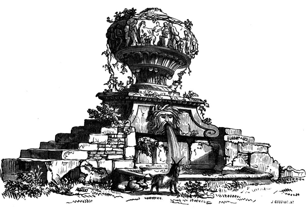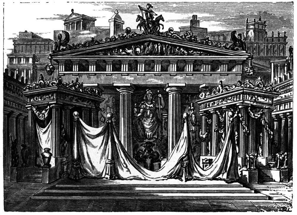 The first view given in this volume attempts to show the picturesque effect of the Grecian Temple in its complete state, the attendants having just retired from some display or ceremony; the second, the front of a Roman Temple in its noble remains.