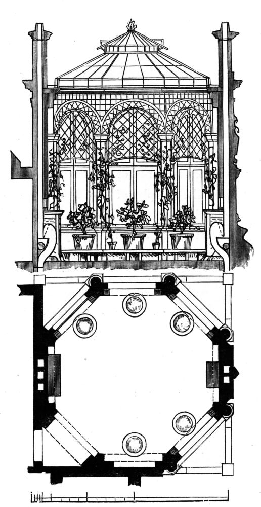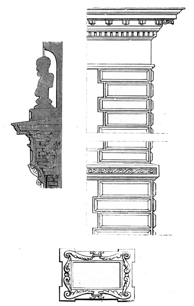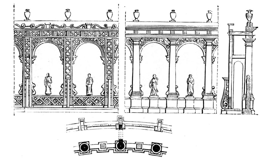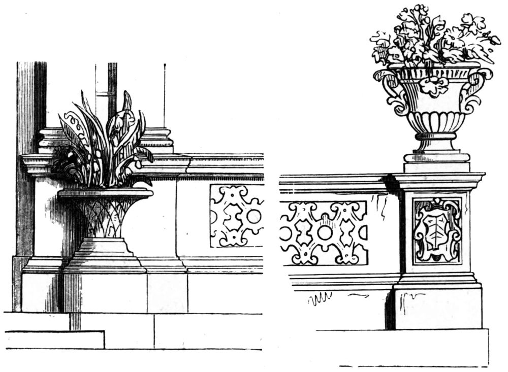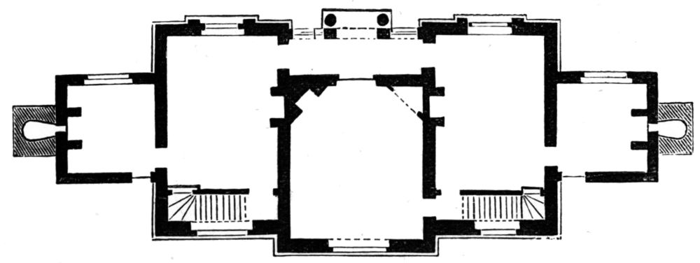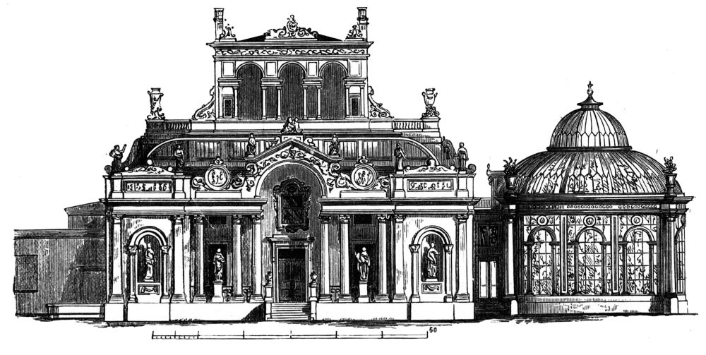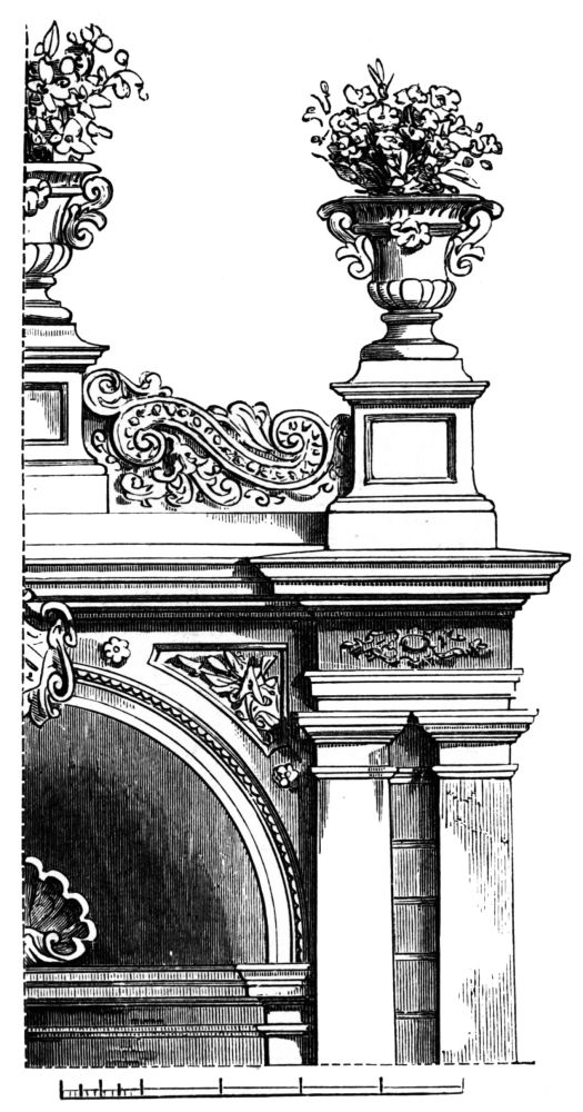 Towards the middle of the fifteenth century a revival in architectural art took place, especially under Brunelleschi. The patronage of the Medici added a stimulus to the progress thus initiated. Improvements were introduced in the erection of private residences in most parts of Western Europe, the art having in its best form been chiefly till then directed to building edifices for religious purposes alone. In the sixteenth century architecture in Rome attained a perfection nearly equal to that it had formerly enjoyed under the Cæsars, especially during the Augustan age. Private and public buildings were erected of great magnificence, yet of simplicity of form combined with grandeur. Under Vignola architecture attained great excellence.{26} Michael Angelo was appointed architect of St. Peter’s at Rome about the middle of the sixteenth century, and the mention of his name alone is sufficient to call to mind the extent and value of his labours in the art. In the seventeenth century, about the year 1620, Inigo Jones was engaged in repairing St. Paul’s Cathedral in London, and subsequently produced designs for the Royal Palace at Whitehall in the reign of Charles I. Greenwich and Chelsea Hospitals, and other noted buildings, were designed about this period. In France and other continental countries architecture attained great perfection at this period, both in respect to public and private buildings. Among the most eminent architects of a period somewhat nearer to our own time, was Sir Christopher Wren, whose St. Paul’s Cathedral serves as a monument to the great genius of that eminent man. This era may, comparatively speaking, be considered as the commencement of the modern style of English church architecture, inasmuch as several productions of Wren are still used for the purposes to which they were first applied, having undergone little or no change since their completion.