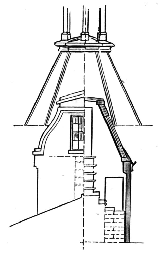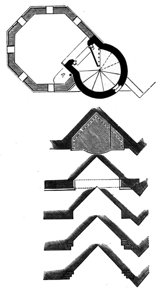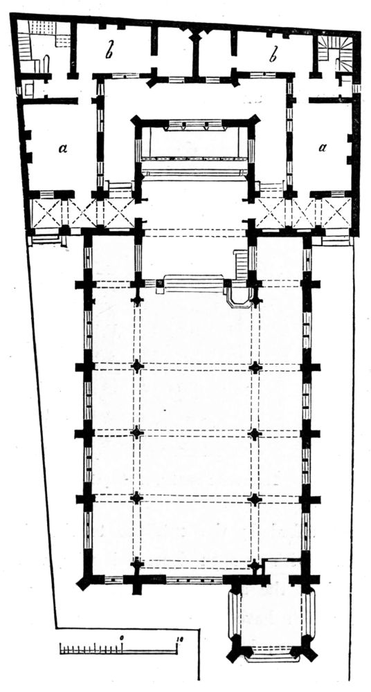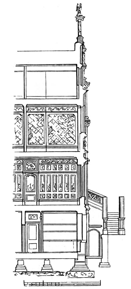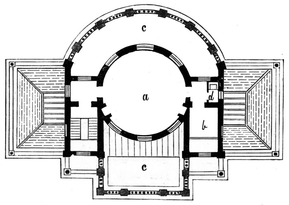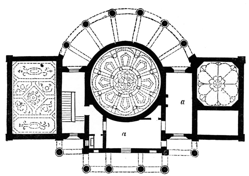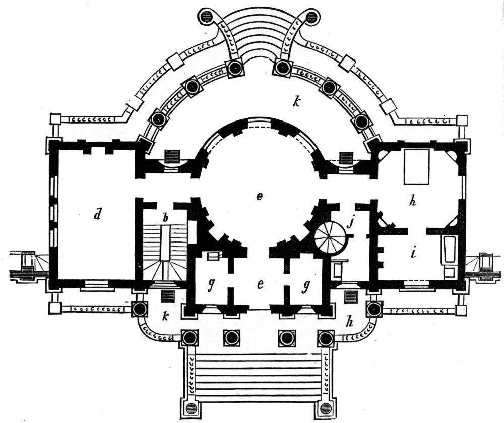 Towards the middle of the fifteenth century a revival in architectural art took place, especially under Brunelleschi. The patronage of the Medici added a stimulus to the progress thus initiated. Improvements were introduced in the erection of private residences in most parts of Western Europe, the art having in its best form been chiefly till then directed to building edifices for religious purposes alone. In the sixteenth century architecture in Rome attained a perfection nearly equal to that it had formerly enjoyed under the Cæsars, especially during the Augustan age. Private and public buildings were erected of great magnificence, yet of simplicity of form combined with grandeur. Under Vignola architecture attained great excellence.{26} Michael Angelo was appointed architect of St. Peter’s at Rome about the middle of the sixteenth century, and the mention of his name alone is sufficient to call to mind the extent and value of his labours in the art. In the seventeenth century, about the year 1620, Inigo Jones was engaged in repairing St. Paul’s Cathedral in London, and subsequently produced designs for the Royal Palace at Whitehall in the reign of Charles I. Greenwich and Chelsea Hospitals, and other noted buildings, were designed about this period. In France and other continental countries architecture attained great perfection at this period, both in respect to public and private buildings. Among the most eminent architects of a period somewhat nearer to our own time, was Sir Christopher Wren, whose St. Paul’s Cathedral serves as a monument to the great genius of that eminent man. This era may, comparatively speaking, be considered as the commencement of the modern style of English church architecture, inasmuch as several productions of Wren are still used for the purposes to which they were first applied, having undergone little or no change since their completion.