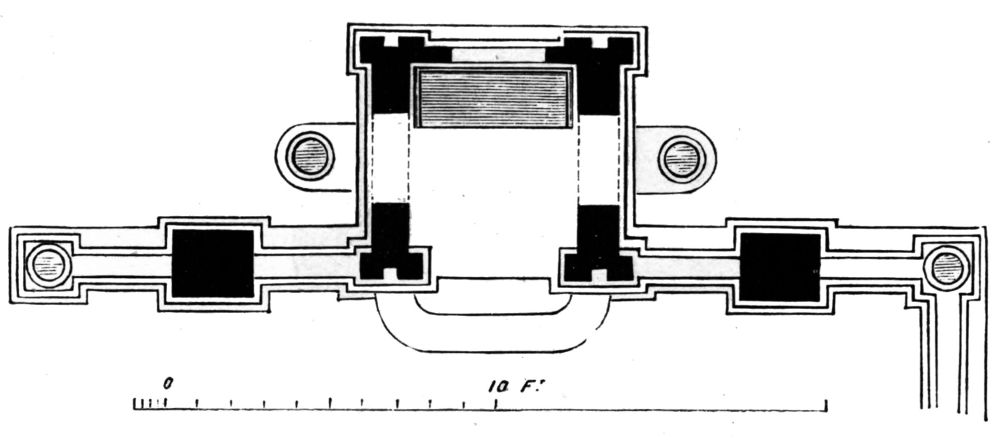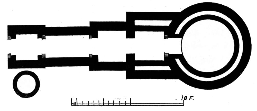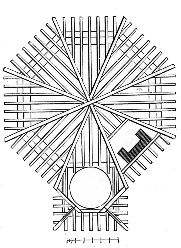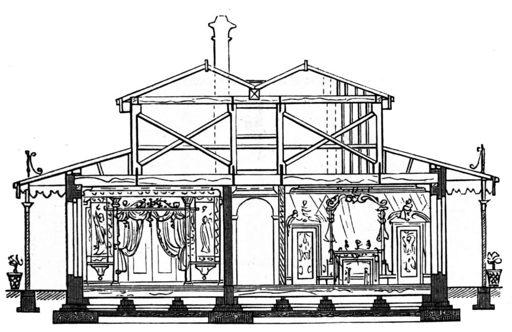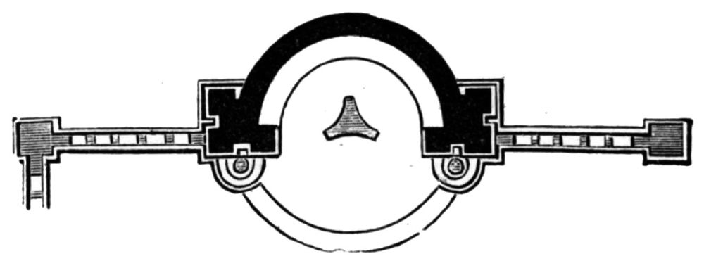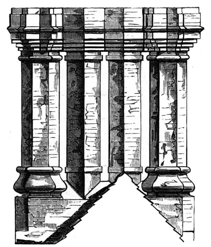 Omitting then any inquiry into the architecture of our earth’s aborigines, which was evidently of the rudest character, reference may first be made to early architectural attempts in Asia. It has been ingeniously observed by M. Pair, that the Chinese imitated a tent as the model of their system, a result that undoubtedly arose from the fact that the first Tartar tribes were nomadic or wandering in their nature. It has also been remarked that a bird’s-eye view of a Chinese city at once suggests the idea of a fixed camp. In southern and south-western Asia may be found, on the other hand, the remains of extensive architectural productions in caves, such as that of the Pagoda Elephanta, from which many have argued that subterraneous dwellings were amongst the earliest; but it is evident that such could only be made in places where stone existed in masses, as a basis of the country. In a plain and sandy district, and in alluvial soil generally, such could not possibly have been produced. There is not the least doubt that the conditions of climate have in all cases determined the early character of each national system. In both hot and cold countries caves would naturally have been sought as affording shelter from{18} the two extremes of heat and cold. Recent geological discoveries have brought to light the fact that the remains of human and quadruped bones have been found together in such situations, the human inhabitants having most probably been the predecessors of the beasts of prey, as also of the fowls of the air. It has been suggested too that the forest tree having formerly served for shelter, might have suggested the floral character of columns, and the use of floral decoration generally at their summit.