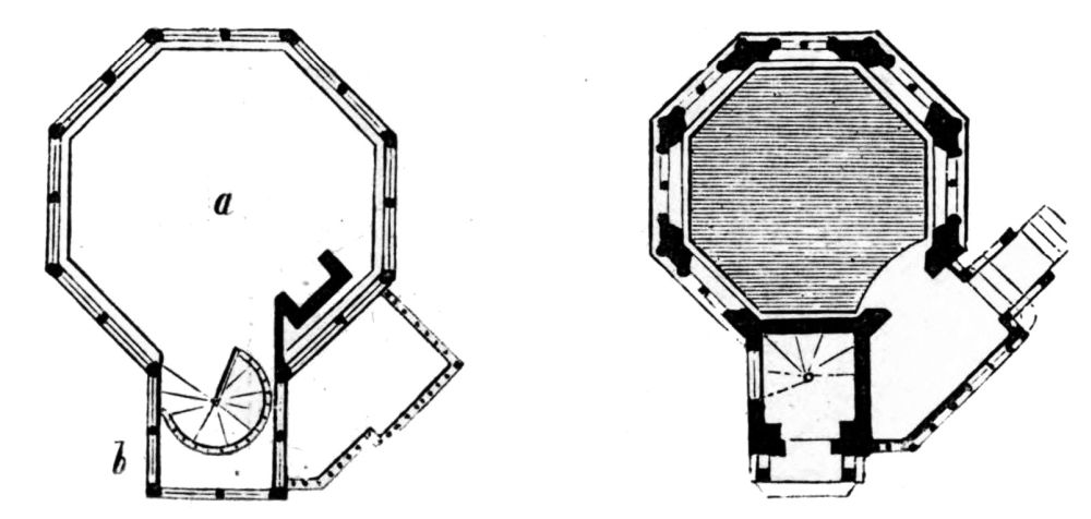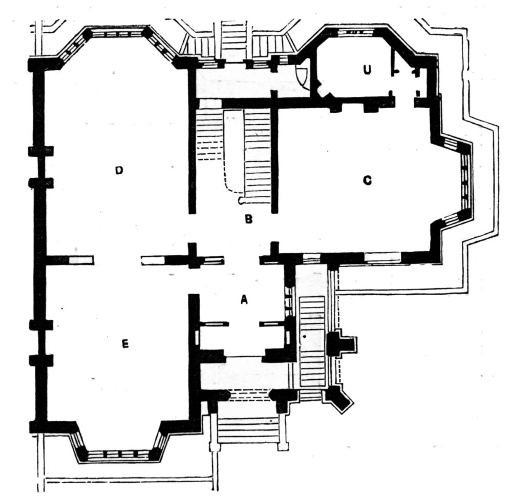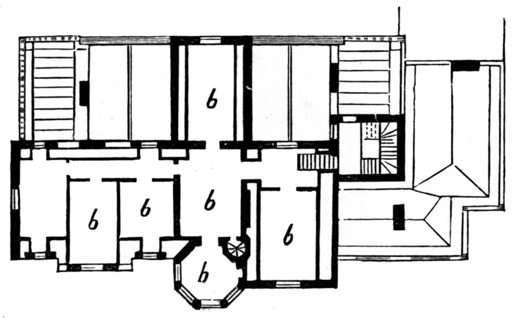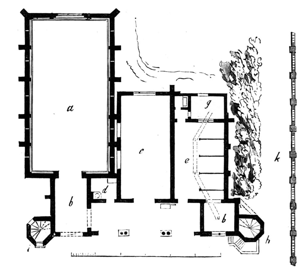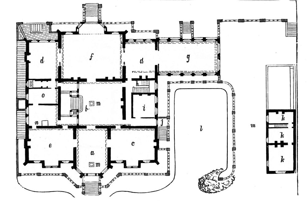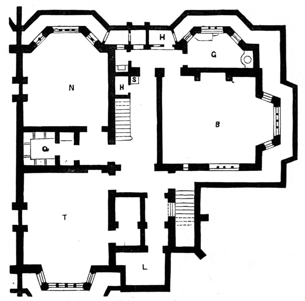 Most of the old mansions, &c., of this country and many parts of Continental Europe, have been erected in situations that were then immediately, and at little cost, available for the purpose. At one time the choice of such situation depended on careful attention to the special circumstances of those who erected the building. Thus it is found, generally, that the banks of the rivers, as affording ready and cheap means of carriage by the stream, were mostly chosen. Hence our abbeys, monasteries, &c., are frequently found in such localities. Baronial castles were usually erected on hills, the height of which tended to the security of the owners against sudden incursions of their foes. From the varied character of English topography has{15} arisen that great variety of picturesque beauty that distinguishes the ruins which abound in almost every county throughout the length and breadth of the land; such ruins, architecturally considered in relation to the surrounding circumstances of wood, vale, hill and dale, have become subjects of study and suggestion to modern architects, and models, constantly adopted at the present time, in certain details, for producing new designs. In the selection of these, or of any other style, however, Burke has laid down, in his essay on “The Sublime and Beautiful,” an excellent rule: “A true artist should put a generous deceit on the spectators, and effect the noblest designs by easy methods. Designs that are vast only by their dimensions, are always the sign of a common and low imagination. The work of art can be great but as it deceives; to be otherwise is the prerogative of nature only.”