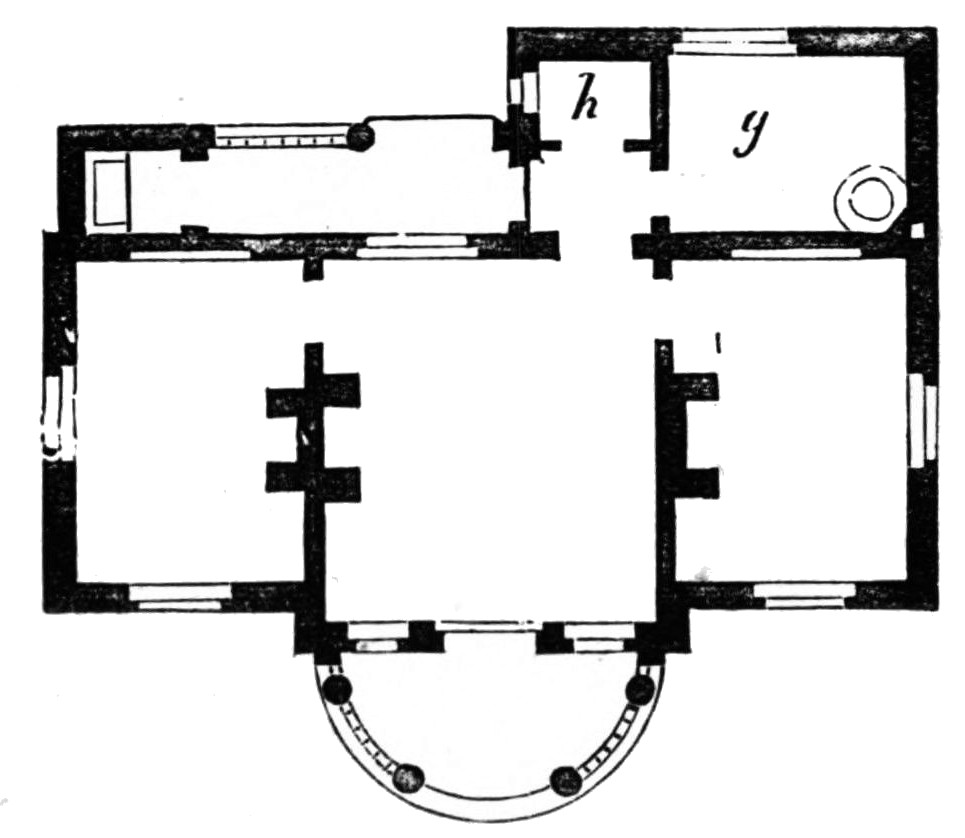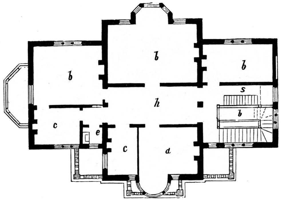 But in these remarks attention is chiefly drawn to the general architectural effects of style, independent of concomitant circumstances. Yet it is hardly necessary to do more than call on the experience of any man of taste to show that position, adjacent scenery, and other “accidental” or “incidental” matters will modify the special effect of any style in regard to the picturesque, and also those of a general character. A Gothic erection in a confined situation will lose most of its beauties, while one of a Grecian character may be especially suitable. In choosing, therefore, any design for the erection of a new building, or alterations in one already in existence, respect should be had to the natural character of the surrounding country, the aspects in regard to the sun and prevalent winds, the extent of the estate or grounds on which the building is to be erected, the views from the various apartments, the character of wood, plain, or other adjacent tree-scenery, and last, but of equal or greater importance, questions in reference to domestic comfort and convenience, drainage and dry soil, supply of water, and a variety of details, most of which will at{14} once suggest themselves. In many cases the choice of site is necessarily fixed by previous purchase or inheritance of the land, yet in such cases chances are left for a judicious selection in regard to some of the conditions above mentioned. But when the purchase has to be effected, all the conditions should be kept in mind, and, if possible, completely satisfied. Such details should form the subject of minute inquiry, and they are here only named for the purpose of showing how the choice of the best style, in regard either to general beauty or picturesque effect, should be decided on with mature attention to all the circumstances of the case.