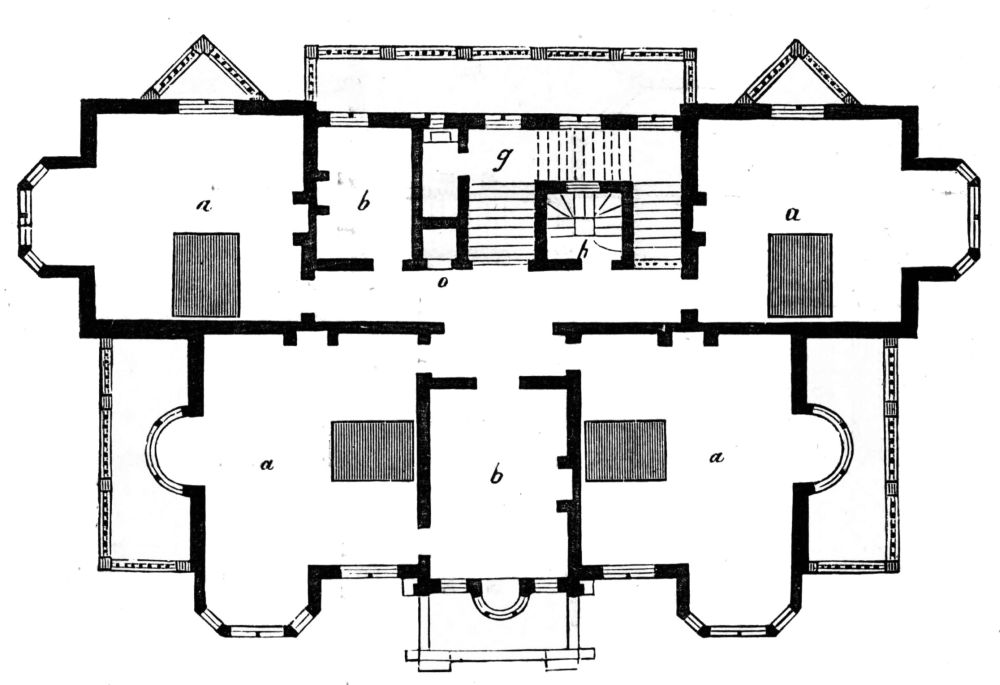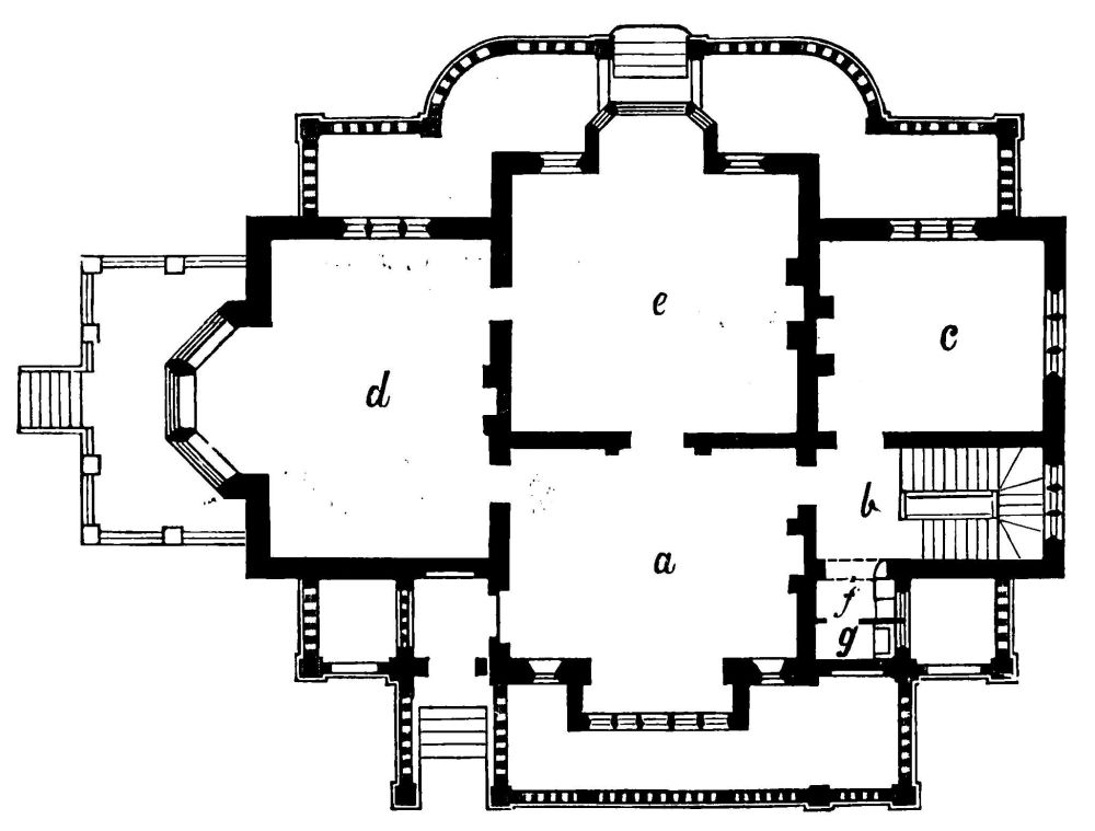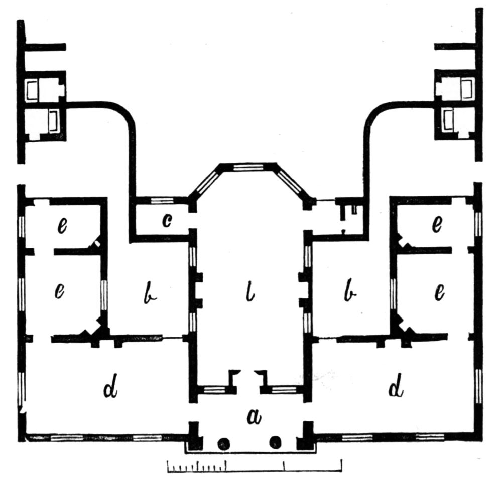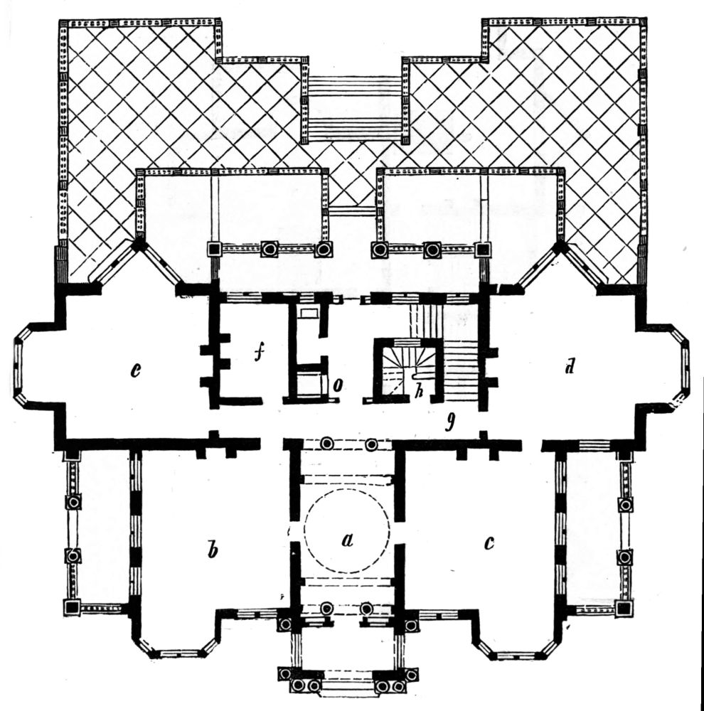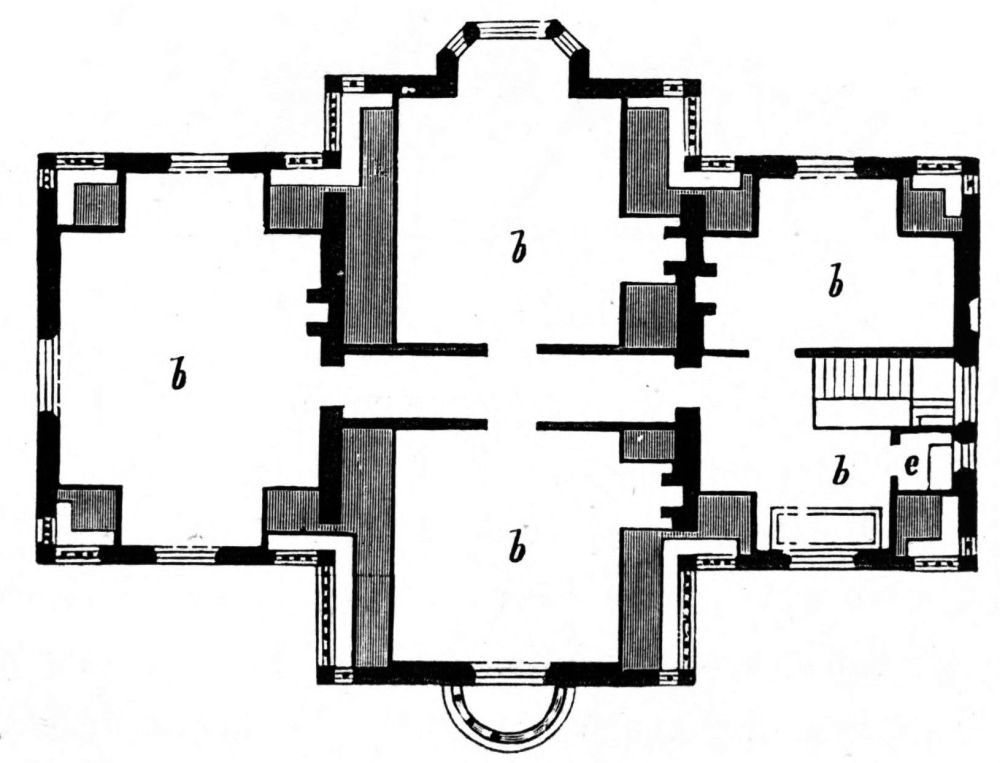 It will thus be seen, that to obtain the highest effect of the picturesque in architecture requires an educated eye, a refined taste, great experience, but especially a keen perception of all the conditions, on the fulfilment of which the most successful result can be obtained. In all there is a natural love of unity and effect. Montesquieu, in his dissertation on Taste, observes: “Wherever symmetry is useful to the soul, and may assist her functions, it is agreeable to her; but wherever it is useless, it becomes distasteful, because it{16} takes away variety. Therefore things that are seen in succession ought to have variety, for our soul has no difficulty in seeing them; those on the contrary, that we see at one glance, ought to have symmetry. Thus at one glance we see the front of a building, a parterre, a temple. In such things there is always a symmetry which pleases the soul by the facility it gives her of taking in the whole object at once.”