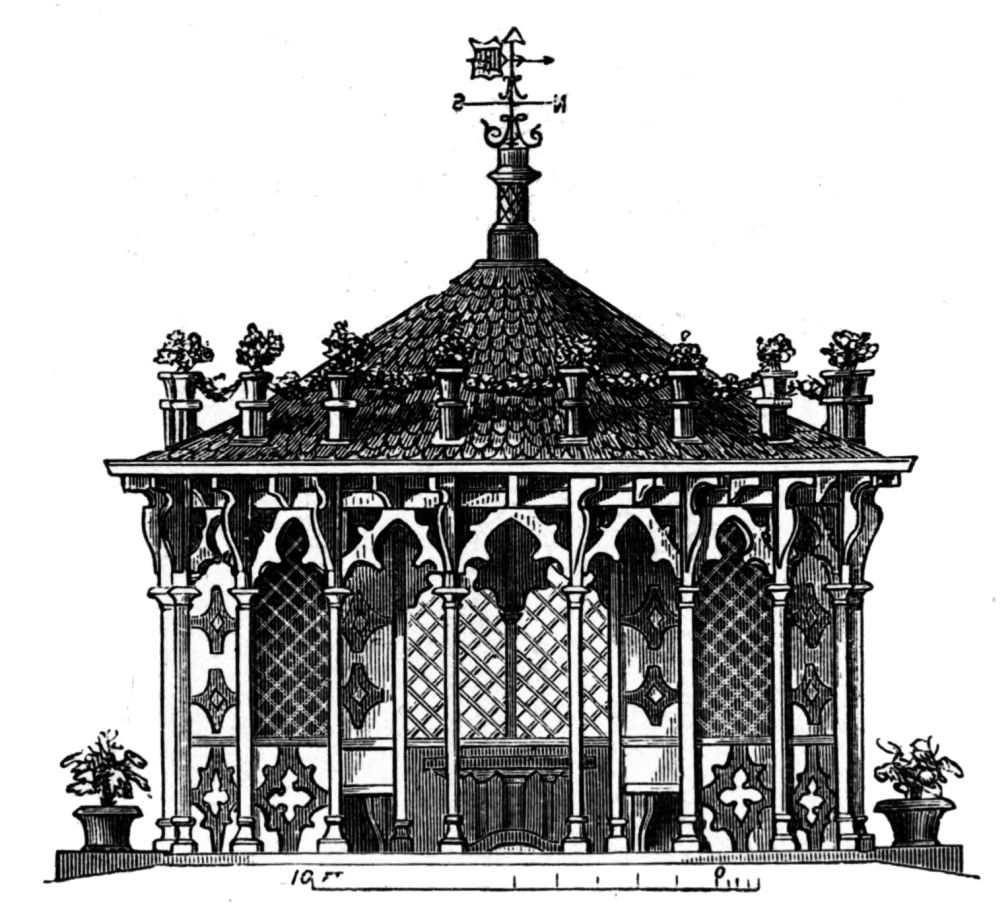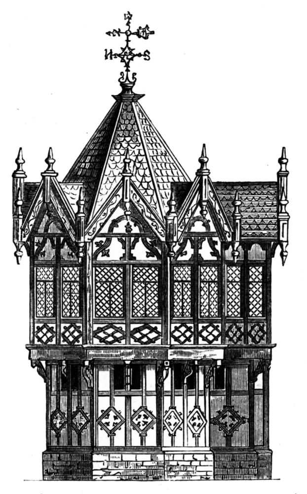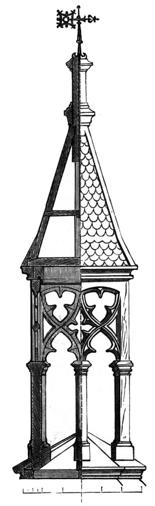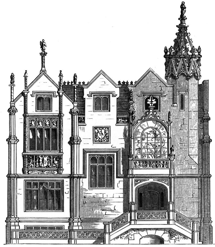 An able writer criticising Gothic buildings, remarks that the outline of the summit presents a great variety of forms of turrets and pinnacles, some open, some fretted and variously enriched. But even where there is an exact correspondence of parts, it is often disguised by an appearance of splendid confusion and irregularity.