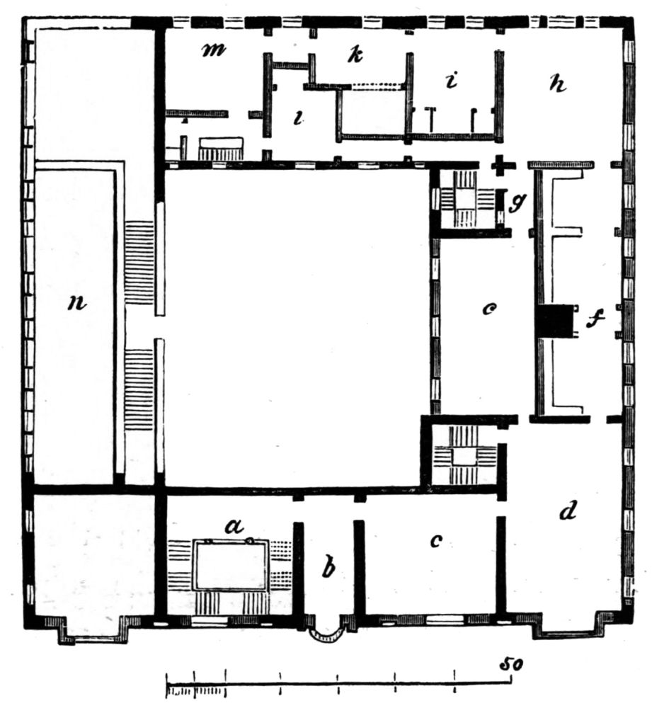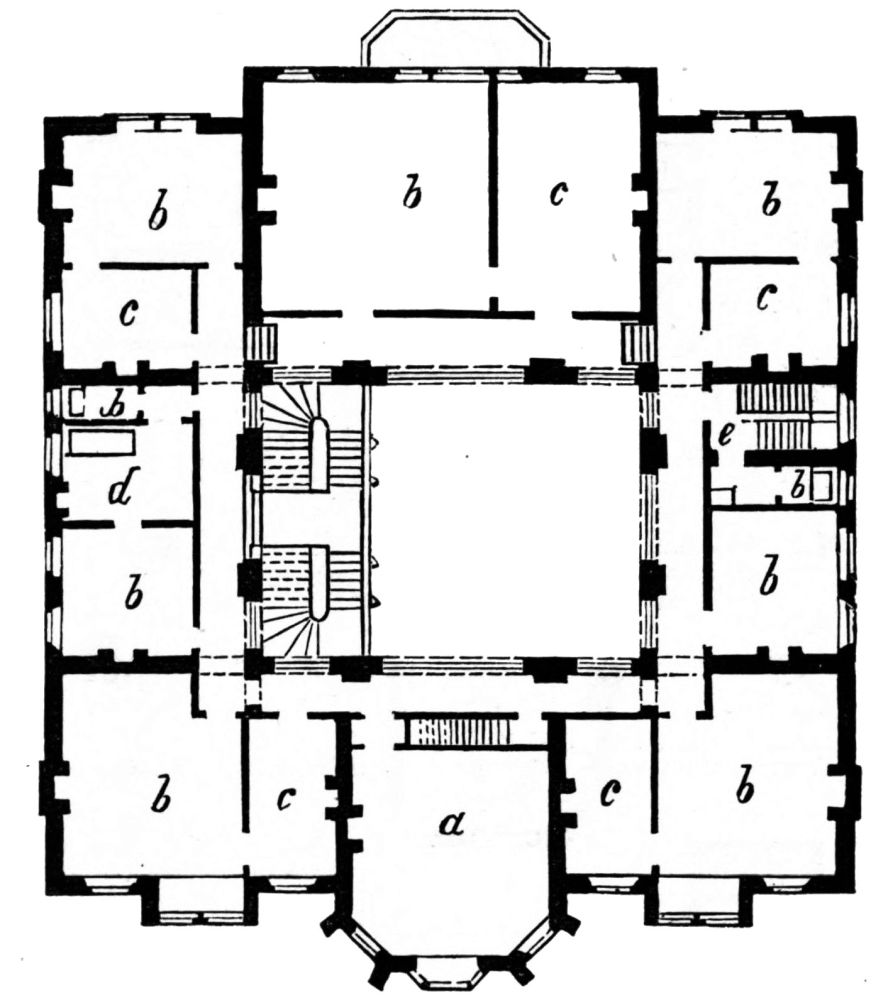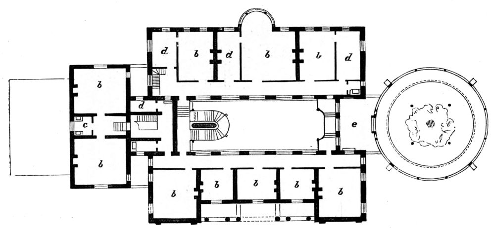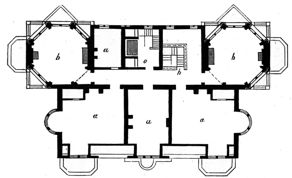In all branches of architecture direct reference should be had to the objects for which the building is intended. An eminent architect, already quoted, has well set forth this essential point in the following remarks:—“The art of characterizing, that is to say, of rendering evident by material forms the intellectual qualities and moral ideas required to express in edifices, or to make known by the harmony and suitableness of all the constituent parts that enter into their composition the use for which they are intended, is perhaps of all the secrets of architecture the most difficult to develope or to attain. This happy talent of conceiving and of communicating the conception in the physiognomy suitable to each edifice; this sure and delicate discernment, which exhibits the distinguishing parts of such edifices, that at first appear susceptible of no characteristic distinctions; this judicious employment of the different styles which are as the tones of architecture; this skilful application of the signs which the{28} art employs to affect the sight and understanding; this exquisite feeling, which errs neither in the just disposition of the masses and employment of the details, nor in the just dispensation of richness and simplicity, and which is able to combine true expression of character with the harmonious accord of all the qualities susceptible of being represented by architecture—all this requisite talent, which study perfects, but does not produce, is a gift possessed by few. This suitable expression presents itself under two relations, the one appertaining to architecture in general, and the other to edifices in particular. The first consists in the expression of the qualities or intellectual ideas which are the results of the art metaphysically considered; the second, in the true indication of the uses for which edifices are designed, that is, in considering architecture as a certain mode of expressing or painting. This expression, according to the nature of the buildings and edifices, may be produced by the gradation of richness and greatness proportionate to the nature and the object for which they are erected; by the indication of the moral qualities attached to each edifice, the manner of expressing which is beyond the reach of rules; by the general and particular form of architecture; by the species of the construction and the quality of the materials that may be employed in the execution; and lastly, by the resources of decoration.{29}” In these remarks will be found a highly valuable précis of the excellence to which the art of the architect should be directed, and the means that must be adopted to obtain pleasing and successful results.