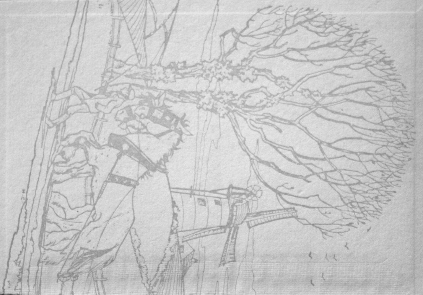 The beeches on the beech-covered hills roar and strain as if they would fly off with the hill, and anon they are as meek as a great horse leaning his head over a gate. If there is a misty day there is one willow in a coombe[20] lifting up a thousand silver catkins like a thousand lamps, when there is no light elsewhere. Another day, a wide and windy day, is the jackdaw’s, and he goes straight and swift and high like a joyous rider crying aloud on an endless savannah, and, underneath, the rippled pond is as bright as a peacock, and millions of beech leaves drive across the open glades of the woods, rushing to their Acheron. The bush harrow stripes the moist and shining grass; the plough changes the pale stubble into a ridgy chocolate; they are peeling the young ash sticks for hop poles and dipping them in tar. At the dying of that windy day the wind is still; there is a bright pale half-moon tangled in the pink whirl of after-sunset cloud, a sound of blackbirds from pollard oaks against the silver sky, a sound of bells from hamlets hidden among beeches.