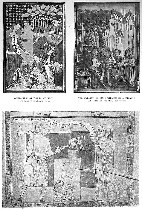 The subject of the Armourer and his Craft has never received much attention in England, even at the hands of Meyrick and Hewitt. On the Continent, however, writers like the late Dr. Wendelin Boeheim, Gurlitt, Buff, and Angellucci have all added greatly to our store of information on the subject. Boeheim’s work on the Armourers of Europe (Meister der Waffenschmiedekunst) is the only work in any language which has given us some account of the armour craftsmen of the fifteenth and sixteenth centuries, and I should be indeed remiss if I did not take this opportunity of acknowledging the assistance which this collection of biographies has been in the preparation of the present work. Signori Gelli and Moretti have collected interesting documents relating to the Missaglia family, but apart from this no other writers have made a study of the Armourer.