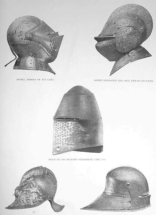 Of living English writers I would express the indebtedness not only of myself, but also of all those who are true amateurs d’armes, to Baron de Cosson, who, with the late J. Burges, A.R.A., compiled the Catalogue of Helmets and Mail which is to this day the standard work on the subject. Last of all I would offer my sincere thanks to[xi] Viscount Dillon, Curator of the Tower Armouries, not only for his minute researches printed in the Archæologia and Archæological Journal, which have brought to light much valuable information respecting the Armourer and his Craft in English records, but also for very great personal interest and assistance in the compilation of this work.