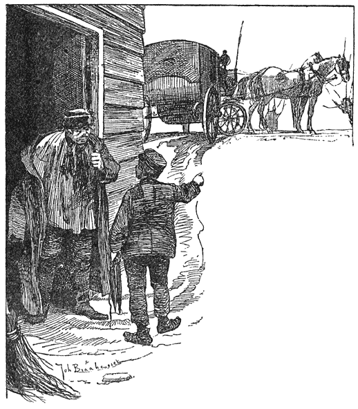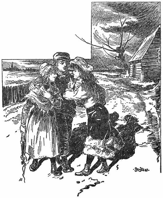 Voorop rijdt Hilda, de dochter van burgemeester De Bruyn, in haar fluweelen, met bont omzet jacketje en haar met pels omboorde jurk, en naast haar Annie Bouman, de dochter van een rijken boer, met haar scharlaken rood jacketje, van stevige wol gebreid, en haar keurig blauw rokje, kort genoeg om haar nette voetjes te doen zien. Verder de trotsche Truida Korbes, de dochter van den rijken aannemer te Broek, Karel Schimmel, Peter en Lodewijk van den Helm, Jacob Poot en een heel kleine jongen, die den naam van Frans van Bree voert. Er waren ruim twintig jongens en meisjes bij elkander, en zij maakten vrij wat pret, dat kan ik u verzekeren.