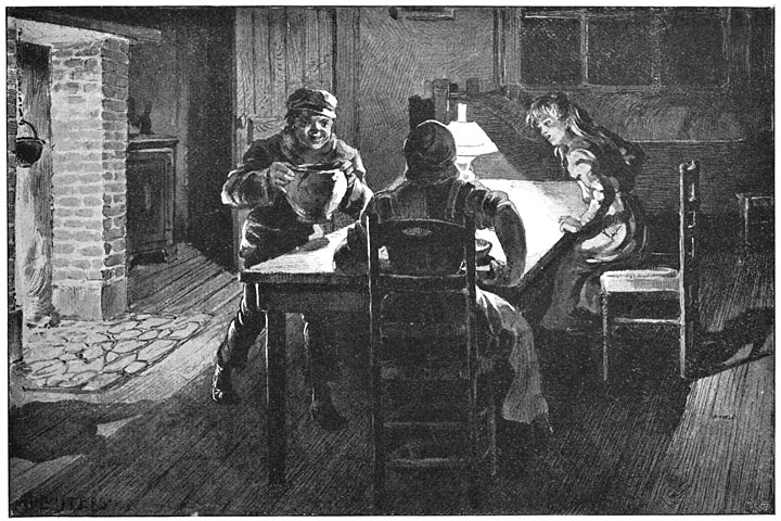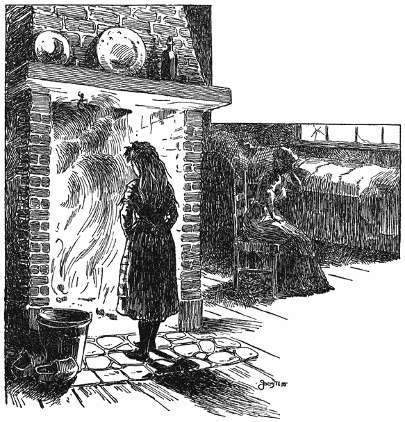 Toen de kinderen thuis kwamen, was moeder Brinker weer binnen en zat hun vader bij het vlammende vuur. Die vader was in vroegeren tijd een stevig werkman geweest, die voor vrouw en kinderen een eerlijk stuk brood verdiende. Maar jaren geleden, toen er midden in den nacht gevaar voor overstrooming was en de man zich aan het werk had bevonden aan den dijk, die dreigde te bezwijken, was hij gevallen, en bewusteloos thuis gebracht. Sedert dat oogenblik had hij niet meer gewerkt, en, ofschoon hij nog leefde, waren zijn verstand en geheugen weg.