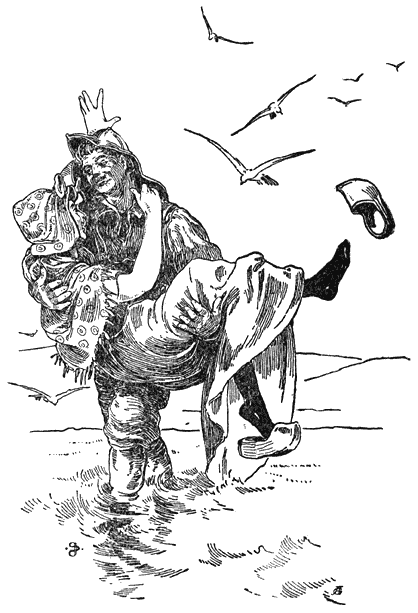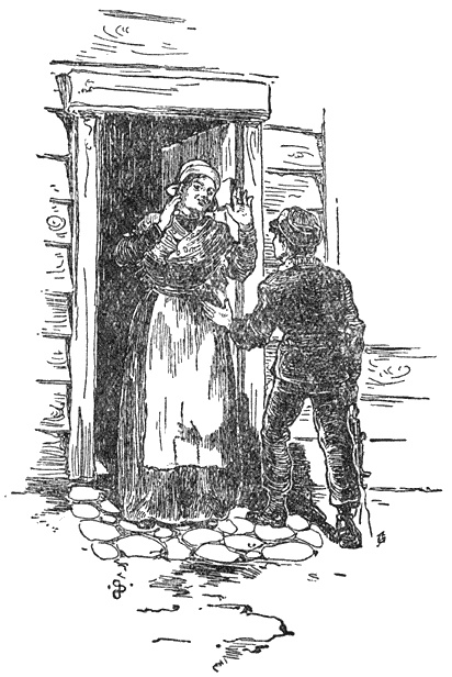 „Waarom heb je ook die dunne schoenen aan je voeten, malle meid?” zeide hij. „Wie trekt zulk dun schoeisel aan, als hij er dikker heeft? Had dan liever je klompen aangehouden.”