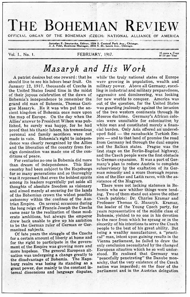 “The story is both argument and appeal. As argument, it reveals that Bohemian character, citing the place of Bohemia in the art of citizenship, in the power of self-control, in its national ideals, in its policies of accommodation to the plans of neighboring states, in its contribution to the world of creative arts, and in its personal views of national duty and responsibility. As appeal it enumerates, point by point, the injustice of many years of Hapsburg rule, and sets out in clear light the many reasons why the Bohemians deserve freedom.”