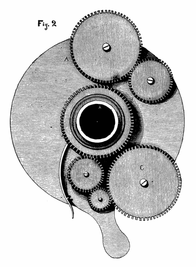 It is evident that by turning the wheel the internal screw is put in revolution, and as it is prevented by its flange from assuming any motion in the direction of its length, the movable cylinder will instead be withdrawn or thrust forward.