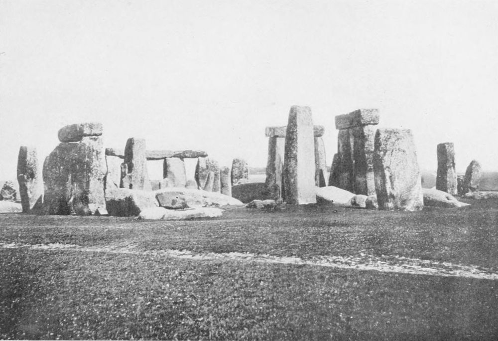 This impressive memorial stands on Salisbury Plain, eight miles north of the cathedral city of Salisbury, in the neighbourhood of which are many barrows. Was it then the temple of a burying place of mighty chieftains or was it erected in memory of some great victory in honour of the dead heroes and the nation’s god? According to Geoffrey of Monmouth (A.D. 1154) who is supposed to have compiled much of his history from Celtic legends, Stonehenge is a Celtic Memorial, erected to the glory of the Celtic Zeus.