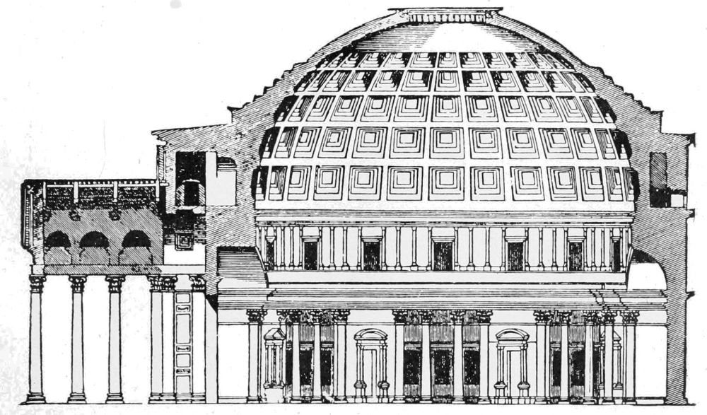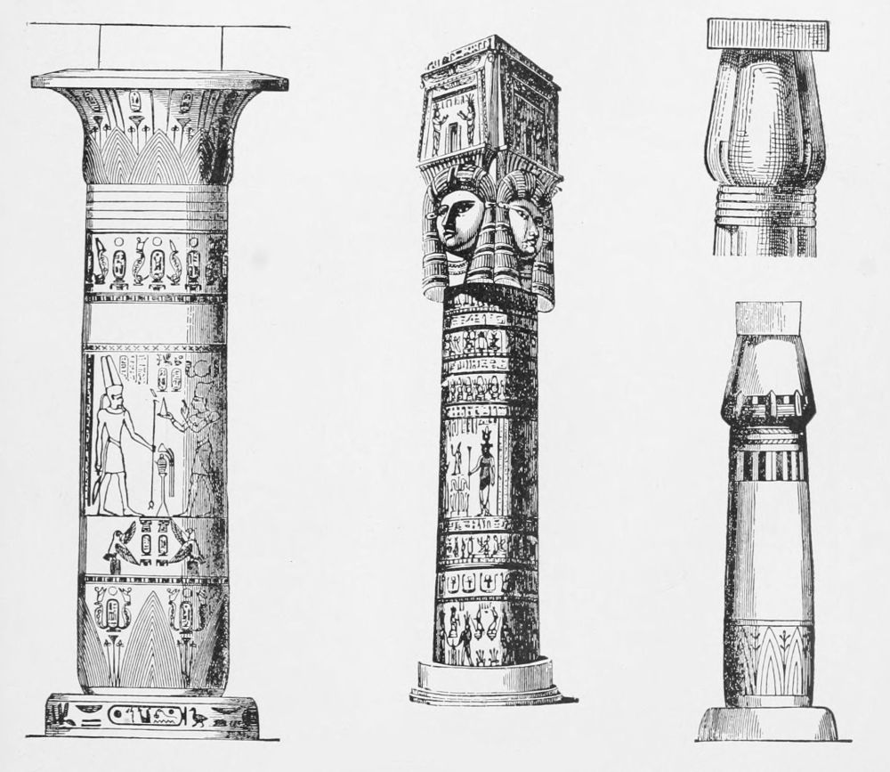Meanwhile, this rude method of spanning an opening with more than one piece of stone was the primitive germ of the later development of arch, vault, and dome construction, just as the placing of a single horizontal stone on two upright ones is the prototype of columns and entablature. Thus the instinct of man, in earliest times,{16} reached out toward the two fundamental principles of architectural construction.