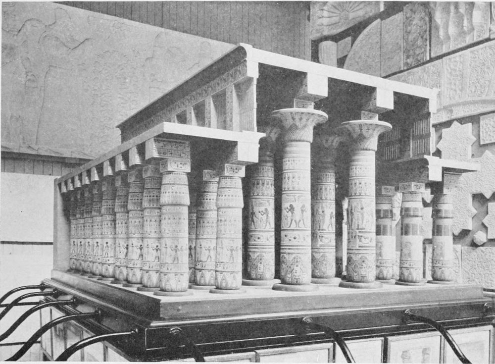 Hence the importance which was attached to size and beauty of colour in the Temple architecture. Evidence shows the Egyptians were not an intellectual race. That is to say, they were not given to speculation; nor did they carry their mathematical or scientific studies beyond the point at which they were needed for material and practical purposes. And equally devoid of abstract qualities was their imagination. It conceived of “better” in terms of “bigger,” and “best” in terms of “biggest.” Through all their centuries of civilisation they did not progress beyond the crude stage of finding sufficient satisfaction in constructing or possessing “the biggest thing on earth.” And the biggest was constructed by sheer force of numbers of slave-workers, at an immense human{34} sacrifice. It has been computed that every stone in the huge Temples cost at least one life.