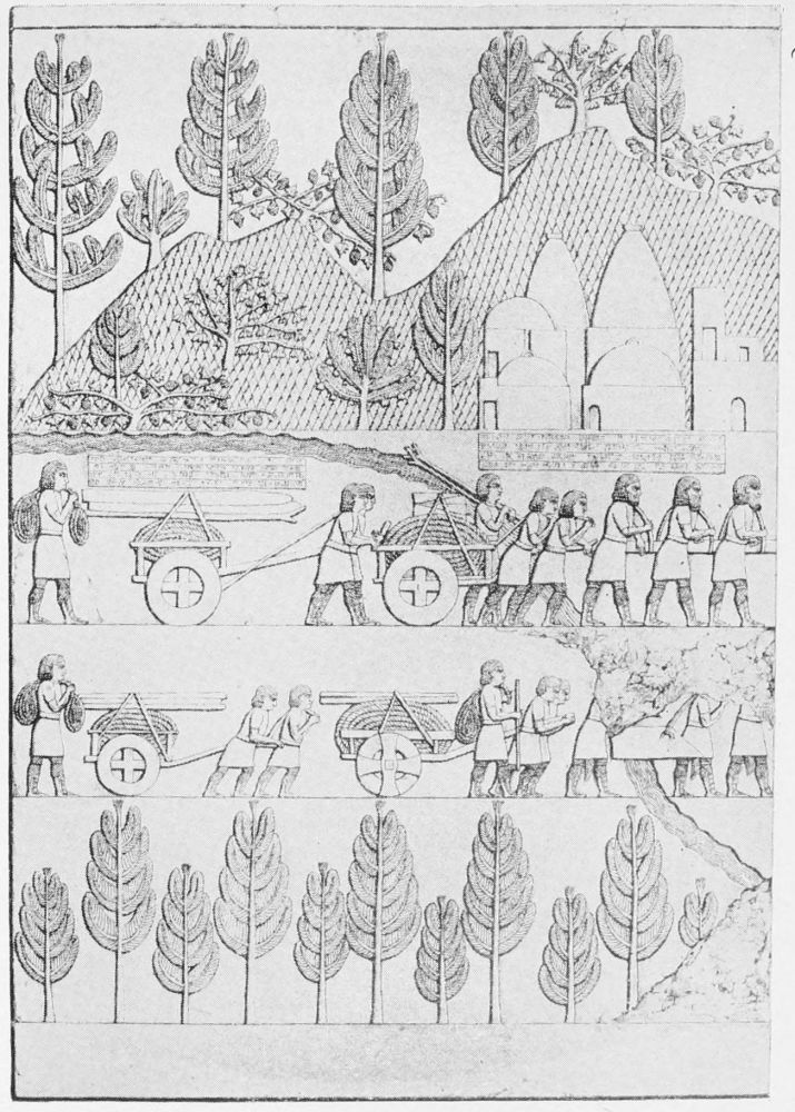 Each administrative department had its own {31}troops—or, to use the modern word, corvée—of slaves, under an overseer who kept tally of work done and rations distributed. It was the troop, not the individual, that constituted the unit. Agriculturists ranked higher than the artisans; although the work of the latter was highly esteemed. The weavers made baskets, mats, and boats of papyrus leaves and produced linen of the finest quality as well as coarser grades. The carpenter, notwithstanding the scarcity of timber, did creditable work with the simplest kind of tools. Little variation was attempted by the potters in the forms of vessels, which were crude but often finished with fine glazes. The metal workers used gold, silver, bronze, iron, and tin; silver exceeding gold in value. Whence they procured tin is unknown, but the other metals came from the mines of Sinai and Nubia.