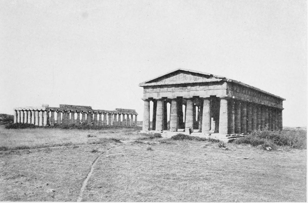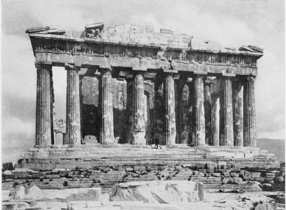 The efforts of primitive builders, it is true, are rather of archæological than of architectural significance, yet they have this much to do with architecture, that in them are to be discovered the rudiments of the art. For by the time that man had superimposed a stone horizontally upon two vertical ones, he had hit upon the principle of construction, now variously styled “post and lintel” or “post and beam” or “trabeated,” that is to say, “beam” construction. The embryo was conceived that in the fulness of time would be developed into the trabeated design of the Egyptian temple and the column-and-entablature design of Classic architecture. From the colossal, monolithic form, still preserved, for example, in Stonehenge, there is a direct progression to the highly organised perfection of the Parthenon.{9}