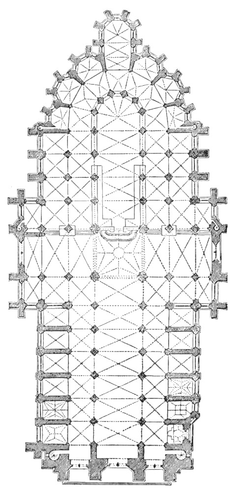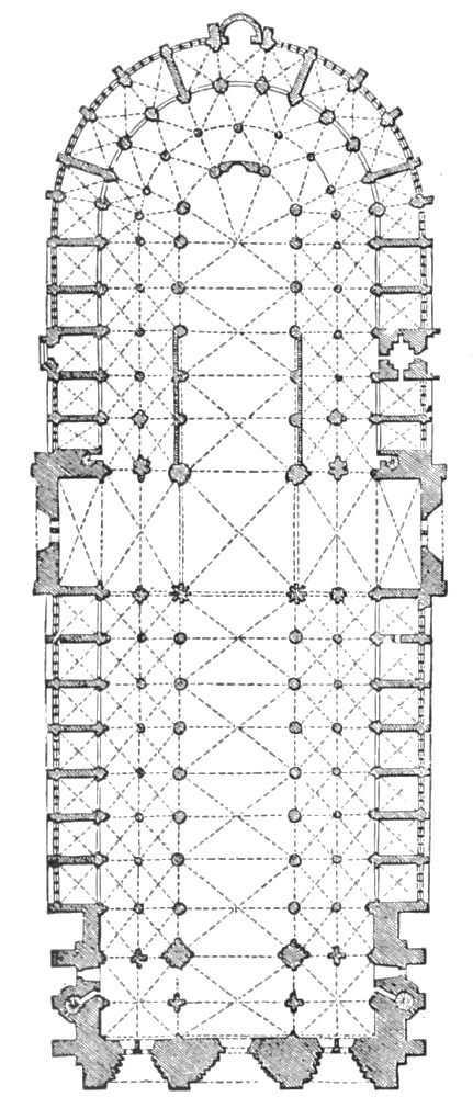 Then, having acquired the habit of thinking of a building as having originated in a plan, we will follow the building as it grows up out of the plan, taking vertical form in what the architect calls the elevation, or, when he is speaking specifically of the outside of the building, the façades. Sometimes we shall study one of the diagrams, which he calls a section, when he imagines his building intersected by a vertical plane that cuts the structure into two parts. The one between the spectator and the cutting plane is supposed to be removed, and thus is laid bare the system of the interior construction-work.