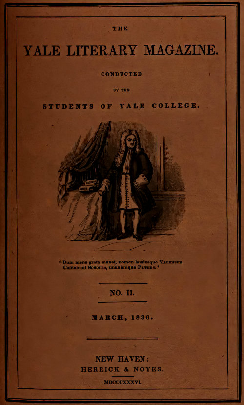 Project Gutenberg's The Yale Literary Magazine. (Vol. I, No. 2), by Various This eBook is for the use of anyone anywhere in the United States and most other parts of the world at no cost and with almost no restrictions whatsoever. You may copy it, give it away or re-use it under the terms of the Project Gutenberg License included with this eBook or online at www.gutenberg.org. If you are not located in the United States, you'll have to check the laws of the country where you are located before using this ebook. Title: The Yale Literary Magazine. (Vol. I, No. 2) Author: Various Release Date: January 5, 2020 [EBook #60834] Language: English Character set encoding: UTF-8 *** START OF THIS PROJECT GUTENBERG EBOOK THE YALE LITERARY MAGAZINE. *** Produced by Richard Tonsing, hekula03, and the Online Distributed Proofreading Team at http://www.pgdp.net (This book was produced from images made available by the HathiTrust Digital Library.)