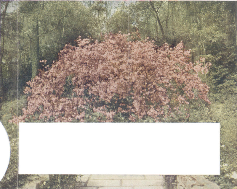 Looking down the pathway of the rustic bridge across Mirror Lake in Bellingrath Gardens is a patriarch of the Azalea family. It is an early pink, blooming generally around the middle of February. When in full bloomage, the gorgeous mass of flowers completely hides the green foliage of this rare bush, which is more than 26 feet in diameter, 14 feet high and 80 feet in circumference. Involuntary exclamations of delight as the visitor reaches this spot is an invariable tribute to the overwhelming beauty of this giant Azalea.