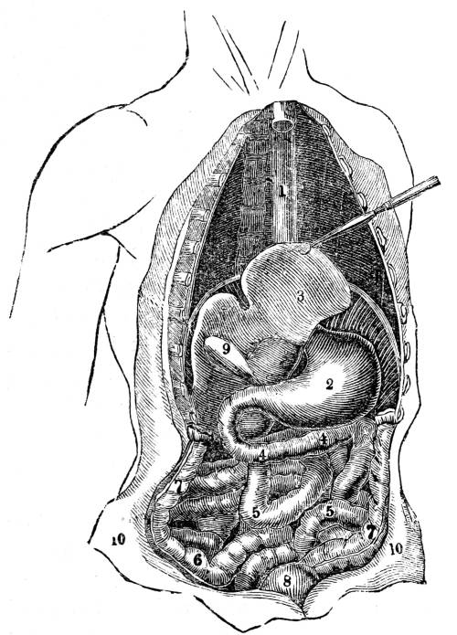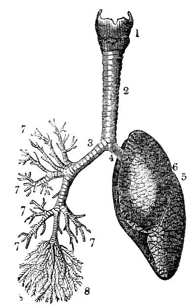 Respiration in the plant; in the animal—Aquatic and aërial respiration—Apparatus of each traced through the lower to the higher classes of animals—Apparatus in man—Trachea, Bronchi, Air Vesicles—Pulmonary artery—Lungs—Respiratory motions: inspiration; expiration—How in the former air and blood flow to the lungs; how in the latter air and blood flow from the lungs—Relation between respiration and circulation—Quantity of air and blood employed in each respiratory action—Calculations founded on these estimates—Changes produced by animal respiration on the air: changes produced by vegetable respiration on the air—Changes produced by respiration on the blood—Respiratory function of the liver—Uses of respiration