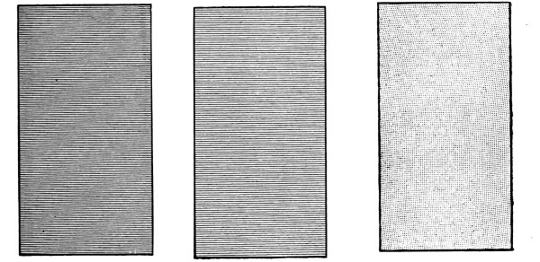 Tinted cards may be used in drawing for half-tone, but yellow tints must be avoided, for obvious photographic reasons; and blue tints, photographically, are practically pure white. If tinted cardboard is used at all, it should be in tints of grey or brown. [Pg 131]