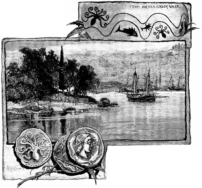 The Corfiotes of to-day boast of descent from the Phœnicians, and certainly they are not to be measured by the same standard as the Greek race in general. Their reputation for dishonesty has given rise to a Greek proverb, which relegates a person of more than usual craftiness and bad faith to the “Corfiotes.” “He behaves like a Corfiote” is the greatest reproach the continental Greek can bring against a man who is too clever in business matters. In character as well as history the Corfiote has little in common with Greece. As he had no place inside the line drawn around the Hellenic world at the great critical, even if mythical, epoch assigned to the siege of Troy, so in his latest history he has always maintained a position more or less apart. Diodorus Siculus makes the Homeric name of the city, Phæacia, to have been derived from Phæacus, son of Poseidon, and places his reign contemporary with the Argonauts, as Phæacus protected Jason against the king of Iolcus when, returning from Colchis with Medea, he took refuge at Scheria. Mythology begins with it in the combat of Zeus and Poseidon in their struggle for supremacy in the government of the universe, and finishes with Ulysses’ visit. History commences with the arrival of a colony of Corinthians under Chersicrates, who built a city which he called Chrysopolis. This was probably Corfu, for, as the immigration 12 of Nausithoüs, coming from Italian shores, first established itself on the coast looking toward their old home, so the Corinthians, coming by the islands and the Epirote shores, would find their first landing in the spacious and tranquil bay formed by the crescent-shaped island, which, at its extremes, approaches the mainland. The Hellene of Corinth brought all the seeds of the virtues and vices of his national temperament to the fertile soil of Corcyra, as it is henceforward called by the Hellenic chronicles, colonization and war with their neighbors filling all their early history. They founded, according to their tradition, Apollonia and other cities on the mainland; but, as among the ruins of those cities there are Pelasgic remains, it is not to be supposed that they were the first colonists, but that they merely colonized, as the Romans did in the later times, with a dominant population, cities in decline or too weak to maintain their independence. This is, in ancient Greek history, oftener the meaning of the word colonize than the founding of a new city. To get a clear idea of the condition of this part of the world at the beginning of historical, or even heroic record, we must take into consideration that an epoch of civilization, perhaps of empire, had long preceded the awakening of the Hellenic national life; an epoch which ought, perhaps, to be measured by centuries, if we could measure it at all, and whose record is preserved in the stupendous ruins we call Pelasgic, a name applied by the Greeks to a people who preceded them, derived possibly from the Greek name of the stork, indicating a migrating or wandering people,—wandering, probably, because their empire had been broken up by some newer and stronger race, but which the various remaining traditions accord in asserting to have once held great rule in Italy, where they were known also as Tyrrhenians, in the Peloponnesus, and in Crete. We shall see presently some indications of the correctness of the assumption that they preceded by an infinite period the great assemblage of 13 Greeks, which the expedition to Troy perhaps marks, perhaps symbolizes; but at present I have only to do with the history and mythology of Corfu, which is in no way that we can discover connected with the Pelasgi.