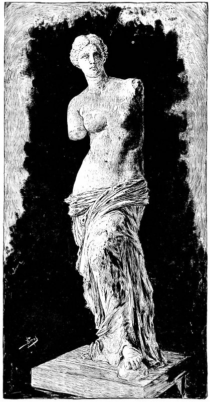 The series of papers herewith committed to the more or less permanent condition of book form were originally (less some development of their arguments) printed in the Century magazine, being the results of an exploring visit to Greek lands taken as a commission for that periodical. I have sought in them to solve, in a popular form, certain problems in archæology which seemed to me to have that romantic interest which is necessary to general human interest; and while necessarily, in such a study, dealing much with conjecture, I have not ventured to assume anything which I am not satisfied is true. The problem of the so-called Venus of Melos is one of those which archæology has fretted over for two generations, and I cannot pretend to have offered a solution which will command assent from the severely scientific archæologist; but I have an interior conviction, stronger than any authority of ancient tradition to my own mind, that that solution is the true one. I do not wish it to be judged as a demonstration, but as an induction in which a kind of artistic instinct, not communicable or equally valuable to all people, has had the greatest part; and, for the rest, I am satisfied to let it be taken by the rule of “highest probability,” by which we solve to our satisfaction, more or less complete, problems of the gravest importance—a rule, indeed, which is for many such the only standard of truth. In archæology, vi as in some other inexact sciences, opinion has with most people greater weight than it always merits, but it should have weight in proportion to the knowledge its originator may have of his subject. As to this I have done all that any man can to penetrate to the material which exists for forming an opinion, and I rest in the sincere conviction, sustained through a study of many years, that the so-called Venus of Melos is really the Niké Apteros of the restored temple dedicated to that goddess.