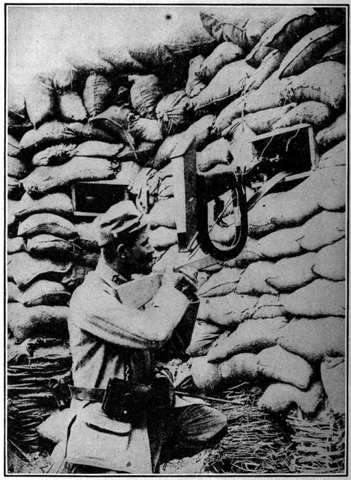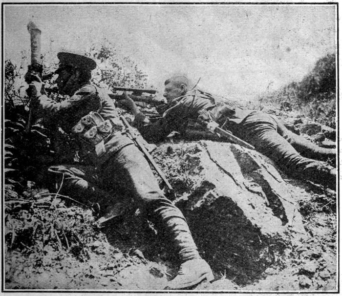 THE SNIPER WITH TELESCOPIC SIGHT. HIS OBSERVER WITH PERISCOPE.