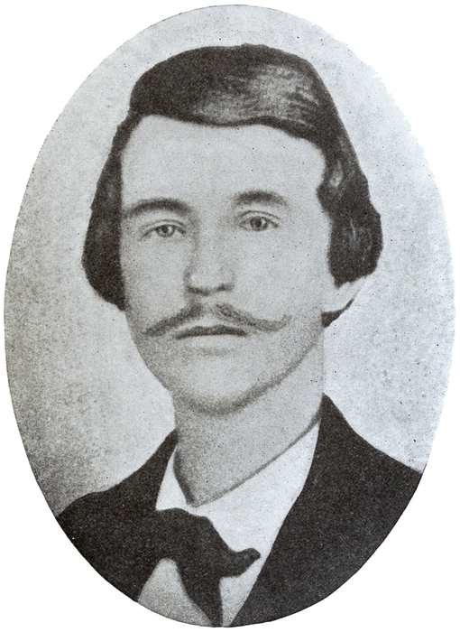 For some time preceding 1857, Quantrell’s only brother lived in Kansas. He wrote to his younger brother, Charles, to come there, and after his arrival they decided on a trip to California. About the middle of the summer of 1857 the two started for California with a freight outfit. Upon reaching Little Cottonwood River, Kansas, they decided to camp for the night. This they did. All was going well. After supper twenty-one outlaws, or Redlegs, belonging to Jim Lane at Lawrence, Kansas, rode up and killed the elder brother, wounded Charles, and took everything in sight, money, and even the “nigger” who went with them to do the cooking. They thought more of the d——d “nigger” than they did of all the rest of the loot. They left poor Charles there to die and be eaten later by wolves or some other wild animal that might come that way. Poor Charles lay there for three days before anyone happened by, guarding his dead brother, suffering near death from his wounds. After three days an old Shawnee Indian named Spye Buck came along,16 buried the elder brother and took Charles to his home and nursed him back to life and strength. After six months to a year Charles Quantrell was able to go at ease, and having a good education for those days, got a school and taught until he had earned enough money to pay the old Indian for keeping him while he was sick and to get him to Lawrence. He reached Lawrence and went to where Jim Lane was stationed with his company. He wanted to get into the company that murdered his brother and wounded himself. After a few days he was taken in and, from outward appearance, he became a full-fledged Redleg, but in his heart he was doing this only to seek revenge on those who had killed his brother and wounded him at Cottonwood, Kansas.