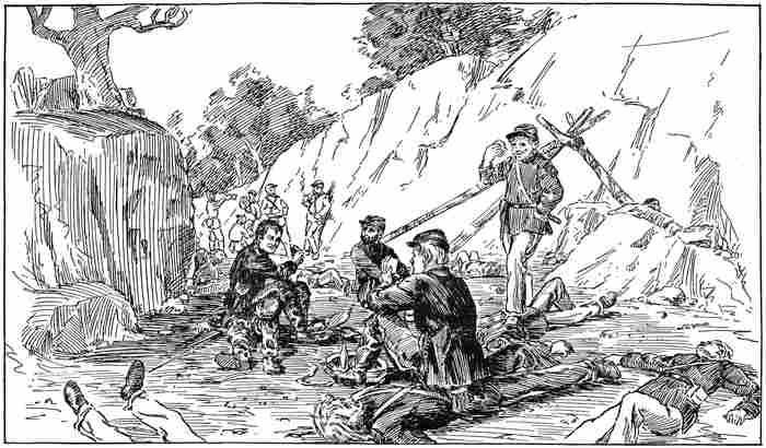 Well mounted and armed, the little detachment left Lawrence quietly, rode two by two, far apart, until the first rendezvous was reached, a clump of timber at a ford on Indian Creek. It was the evening of the second day, and they tarried long enough to rest their horses and eat a hearty supper.