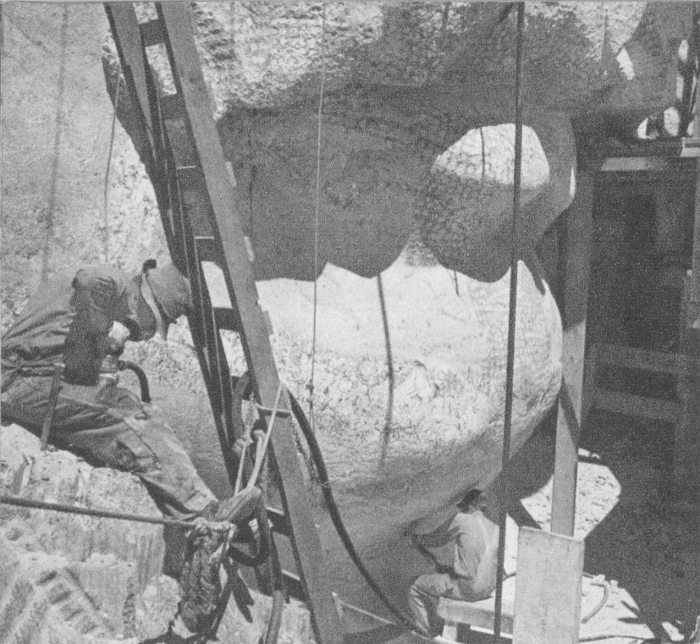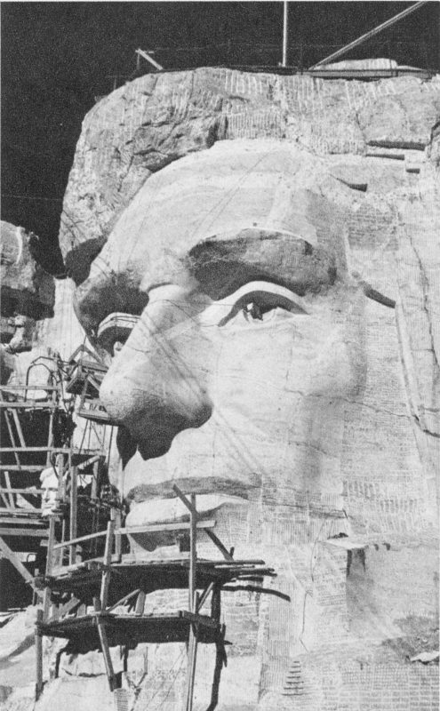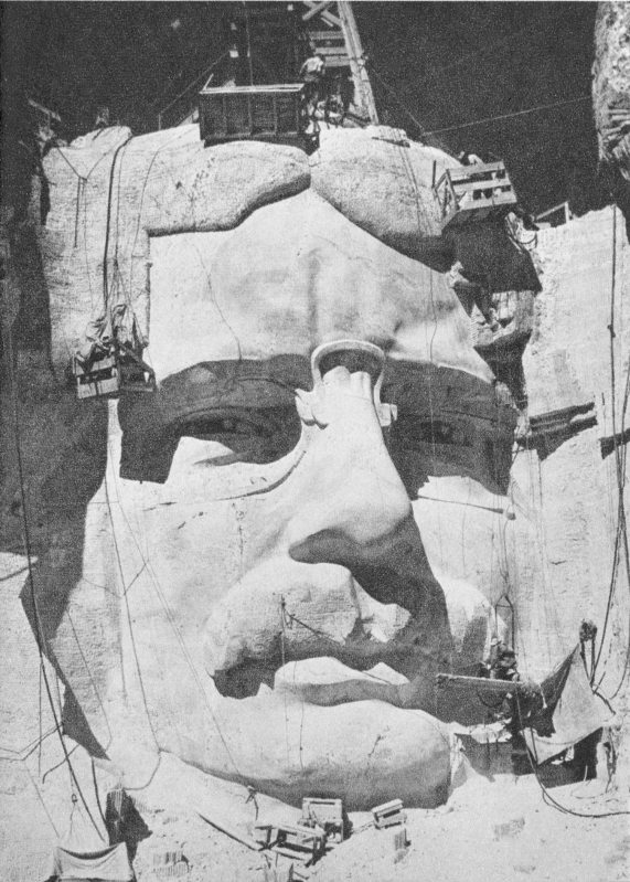 The work of fitting the figures into the cracked granite upthrust called Mt. Rushmore has been a constant struggle between composition and finding solid stone for each of the four heads.