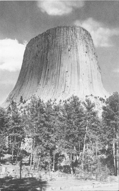 Another unusual natural phenomenon of the Black Hills country is the Devils Tower across the South Dakota state line in Wyoming. This is a great column of igneous rock towering 1,280 feet above the Belle Fourche river, whose course is near the base. Devils Tower has the distinction of being the first national monument created under the Antiquities Act of 1906. It was established by proclamation of September 24 of that year, by President Theodore Roosevelt.