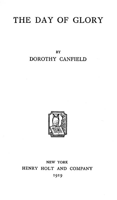 The Project Gutenberg EBook of The Day of Glory, by Dorothy Canfield Fisher This eBook is for the use of anyone anywhere in the United States and most other parts of the world at no cost and with almost no restrictions whatsoever. You may copy it, give it away or re-use it under the terms of the Project Gutenberg License included with this eBook or online at www.gutenberg.org. If you are not located in the United States, you'll have to check the laws of the country where you are located before using this ebook. Title: The Day of Glory Author: Dorothy Canfield Fisher Release Date: January 11, 2020 [EBook #61147] Language: English Character set encoding: ISO-8859-1 *** START OF THIS PROJECT GUTENBERG EBOOK THE DAY OF GLORY *** Produced by Tim Lindell, David E. Brown, and the Online Distributed Proofreading Team at http://www.pgdp.net (This file was produced from images generously made available by The Internet Archive/American Libraries.)