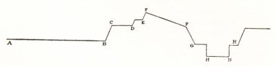 The town, I said, had little beauty in its streets. There was a George the Second church, which had a spaciousness and a dignity of its own. There was another which had neither dignity nor space. There were no public buildings to speak of. But there were the Walls. The Walls! Oh, the Walls! These are all levelled and pulled down now. Nobody knows why they were levelled, but they were; and with them disappeared the beauty and the glory of the town. They were not ancient stone Walls, but earthworks in the style approved about the year 1780. I append a section of the Wall as I remember it. An open space, A B, separated it from the building of the town. A slope, B C, brought one to a broad road, C D, for the carriage and passage of cannon, ammunition, etc. At D, another low slope, about three feet high, to a narrow standing-place, D E, in front of which ran E F, a breast-work. The defenders were to fire, thus protected, across F F. F G was the slope to a level lower than that of A B on the other side. At H H was a narrow moat, but the intention of the builders of the Wall was to let in the water so as to cover up the whole of the valley G H; at H the ground sloped up; at many places the ground beyond H was also protected by an earth-work. The Wall ran in lengths protected by bastions; these bastions were mounted with cannon. At intervals there were stone gates with stone lookout-places, most mysterious. The town was divided into two parts, a Wall ran round each. No one would believe what a lovely place for a boy was the Wall—either Wall—to walk upon, or sit upon, or linger, and look, and listen, and dream upon. If you wanted a quiet place for reading you could sit protected from cold wind on a cannon-wheel; if you wanted to dream you could lean over a certain angle on the Queen's Bastion—was it the Queen's?—and there below stretched out the whole extent of the harbor, a broad lagoon at high tide, four miles from north to south and six from west to east; at the head of the harbor, Porchester Castle stood out, gray and frowning over the clear water that lapped her water-gate. This was a Roman fort; the outer Walls—the Roman work—still stand, and will continue to stand for many centuries; within there are the ruins of a Norman castle, the lofty design still uninjured; in another corner is a long and narrow Saxon church—a fine thing, this, for a boy to gaze upon. But that was not all. The space in front of the Wall was laid out in grass; in spring these meadows were full of buttercups; in the summer the grass all over the Walls, the parapet, the slopes, the sloping up of the Wall, the spaces on the bastions between the cannons, were filled with clover, daisies, buttercups, wild convolvulus, colored grasses—everything. There were also trees—"to catch the shells," we used to say; they were planted all along the Walls, and made a sweet and delightful walk in summer-time. And it was so quiet all day long upon the Walls; nobody but a few children ever came there; we had our own favorite bastion, our own view across the harbor; we carried home handfuls of the wild flowers.