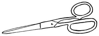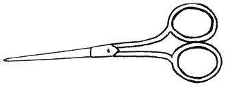 Little scissors like the small pair illustrated are meant to clip thread or cut narrow things like ribbon, elastic, etc. Scissors have very sharp and narrow points to make it possible to clip into tiny corners. Scissors have two handles the same size.